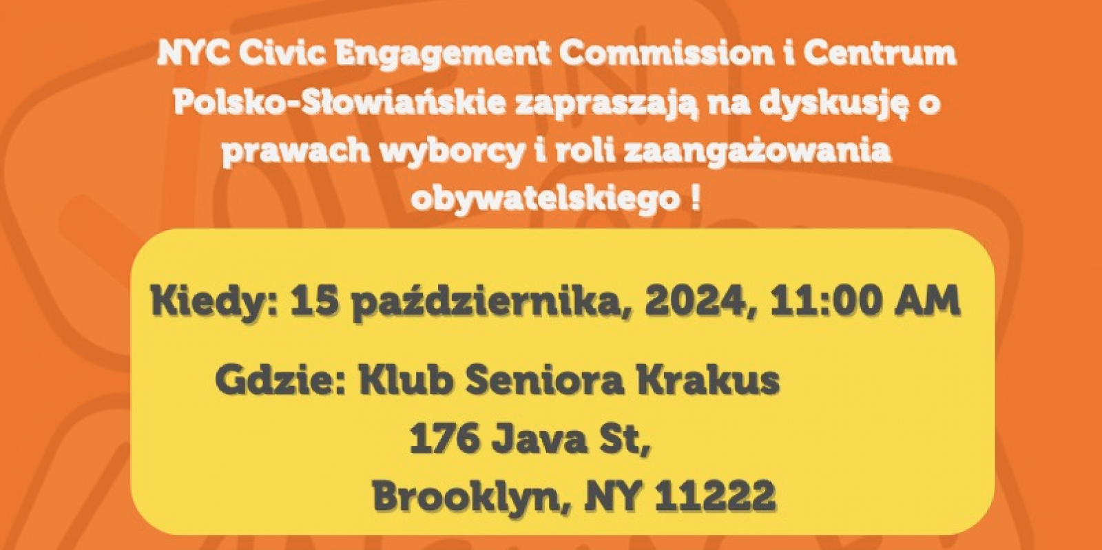 KLUB SENIORA-JP II, KLUB SENIORA-KRAKUS, MINIONE WYDARZENIAWe wtorek 15 października 2024: Zapraszamy na dyskusję o prawach wyborcy w Klubie Seniora Krakus przy 176 Java Street Posted on August 6, 2024August 27, 2025 by Administrator