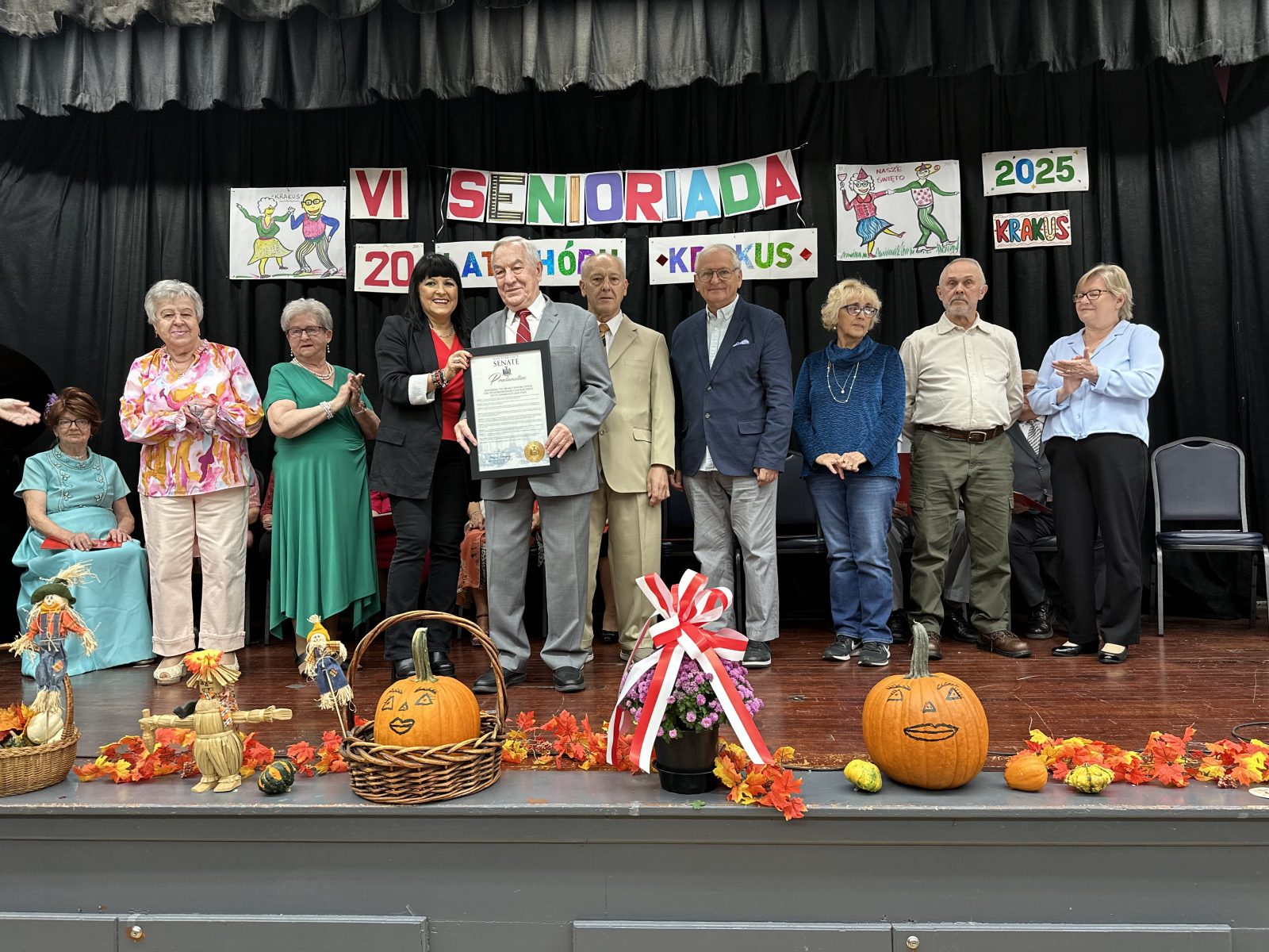 23 października 2025 roku, w Klubie Seniora Krakus działającym przy Centrum Polsko-Słowiańskim, odbyła się wyjątkowa i wzruszająca SENIORIADA — święto radości, wspólnoty i muzyki, podczas którego celebrowaliśmy 20-lecie chóru KRAKUS! To był naprawdę wyjątkowy dzień — pełen emocji, muzyki i wspólnej radości. Chór KRAKUS, pod dyrekcją Kasi Kasia Drucker Voice, zachwycił publiczność wzruszającym repertuarem, który poruszył serca wszystkich obecnych. Nie zabrakło też momentu zadumy — z wielkim sentymentem wspomniano dawnych członków chóru, którzy odeszli, lecz na zawsze pozostaną częścią jego historii i naszej pamięci. Nie brakowało też radości i uśmiechu! Seniorzy wybrali Najserdeczniejszego Seniora Roku 2025, a tytuł ten otrzymała Pani Marianna Prusaczyk — osoba pełna pogody ducha, ciepła i empatii, która od lat wnosi do Krakusa wiele pozytywnej energii. Dodatkową atrakcją wydarzenia była loteria z atrakcyjnymi upominkami, zorganizowana specjalnie dla naszych seniorów. Nagrody zostały zasponsorowane przez Centrum Polsko-Słowiańskie, za co serdecznie dziękujemy! A wisienką na torcie tego wyjątkowego wydarzenia było przedstawienie nagrody przez Agnieszkę Granatowską, Dyrektor Wykonawczą Polish & Slavic Center, którą Klub Seniora Krakus otrzymał podczas uroczystości Dnia Polskiego Dziedzictwa Narodowego, a wyróżnienie osobiście wręczyła Senator Kristen Gonzalez. Dziękujemy wszystkim, którzy byli częścią tego wyjątkowego święta — naszym Seniorom, Wolontariuszom, Pracownikom i Przyjaciołom Krakusa. To dzięki Wam nasz klub pozostaje miejscem, gdzie tradycja łączy się z radością i przyjaźnią. Niech ten jubileusz będzie inspiracją do dalszego wspólnego świętowania, śpiewania i tworzenia niezapomnianych chwil!
