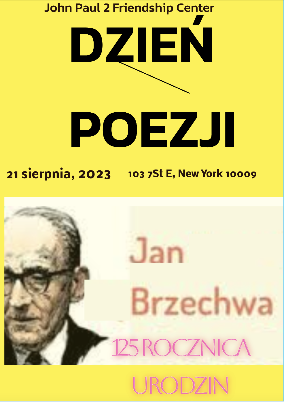 21 sierpnia z racji 125 urodzin Jana Brzechwy w Centrum JP2 na Manhattanie będzie odbywał się dzień z poezja Jana Brzechwy. Będà wyświetlane wiersze jak także film o poecie. Zapraszamy.