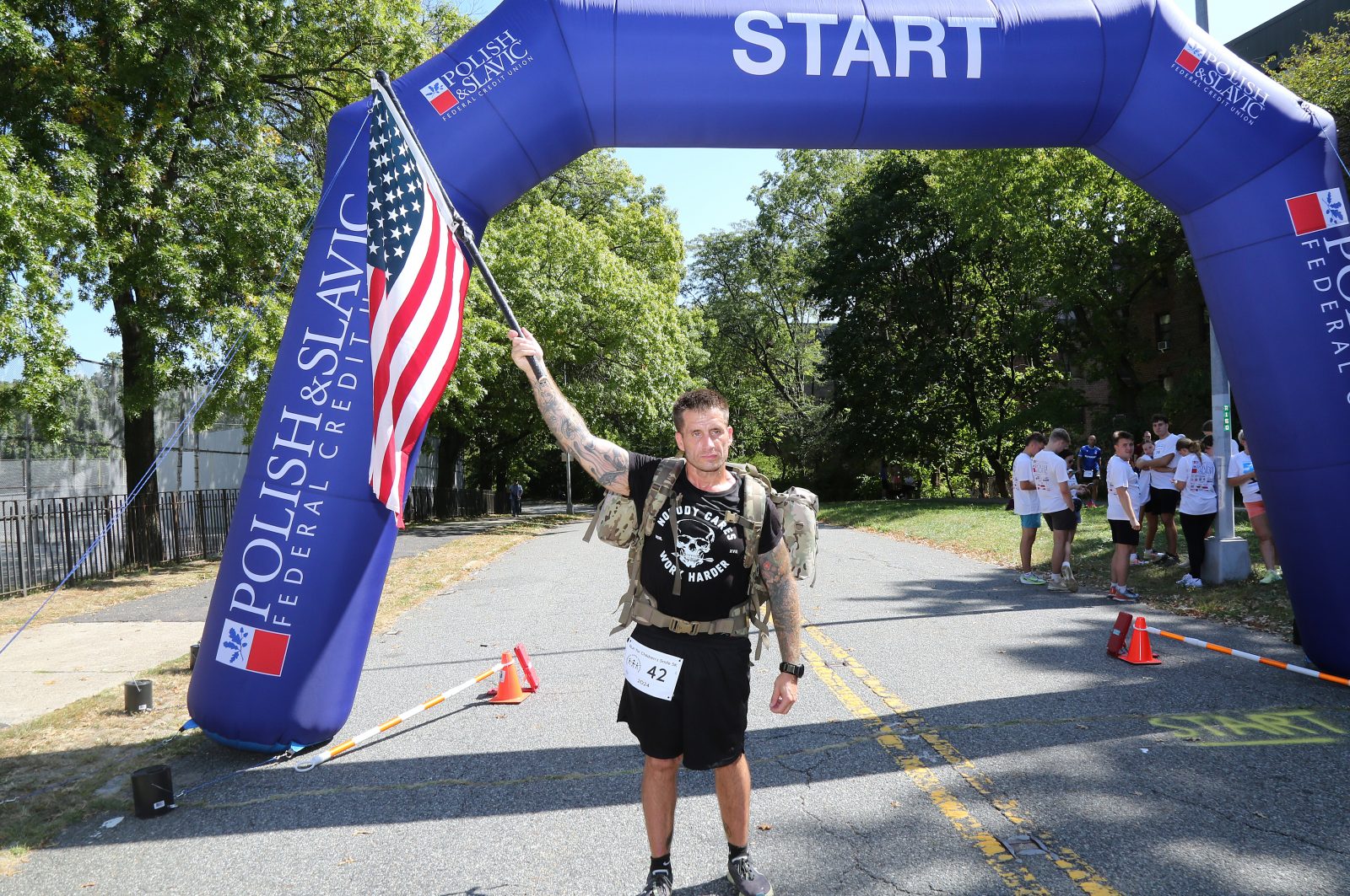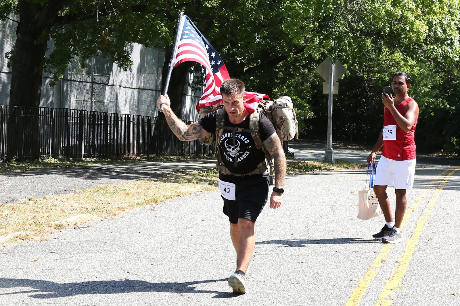Ogromne zainteresowanie wzbudził 42-letni, były żołnierz, Billy Richards, który biegł z dużą amerykańską flagą i 45-funtowym plecakiem. Oddał w ten sposób hołd swoim bliskim. Jak wyjaśnił, w Armii Amerykańskiej służył 7 lat, a w różnych biegach uczestniczy w ten sposób od 2015 roku. Do tej pory wziął udział w 683 sportowych wydarzeniach, do końca roku zamierza ukończyć ich 700, a do końca życia chce zaliczyć 1000 różnych biegów. “Niosę amerykańską flagę, aby uhonorować tych, z którymi służyłem w wojsku. Z kolei obciążony plecak ma symbolizować trudności, z jakimi borykają się weterani, gdy odchodzą ze służby – wyjaśnił Billy Richards. – Szczególny hołd oddaję mojemu nieżyjącemu przyjacielowi, którym jest Joe Hart. Nie byliśmy razem w wojsku, ale chodziliśmy razem do liceum. On również służył w armii i zmarł po zakończeniu służby. Poza tym chcę także uhonorować moją mamę, która odeszła 2 lata temu. Dlatego biegam, mimo że 30 lipca przeszedłem operację biodra” – podkreślił amerykański biegacz. Kontuzji tej doznał w 2019 roku, kiedy to pobił rekord największej liczby biegów na 100 mil w roku. Wówczas, w ciągu 10 miesięcy, ukończył 35 z nich.