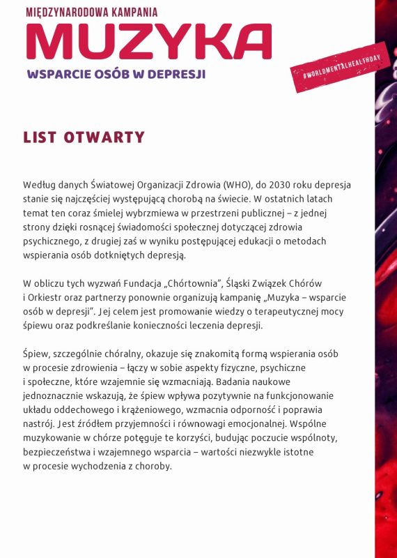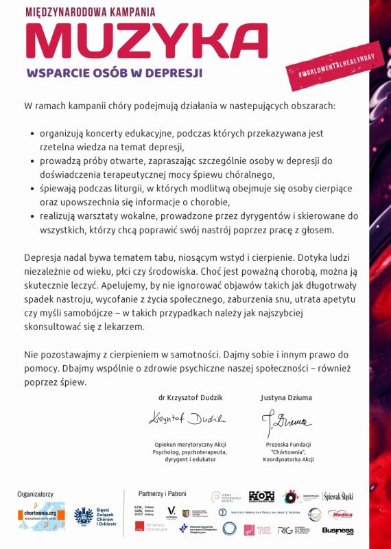 Nasz chór Krakus poraz kolejny dołączył się do Międzynarodowej Kampanii Muzyka – Wsparcie Osób w Depresji organizowanej przez Fundację Chortownia.