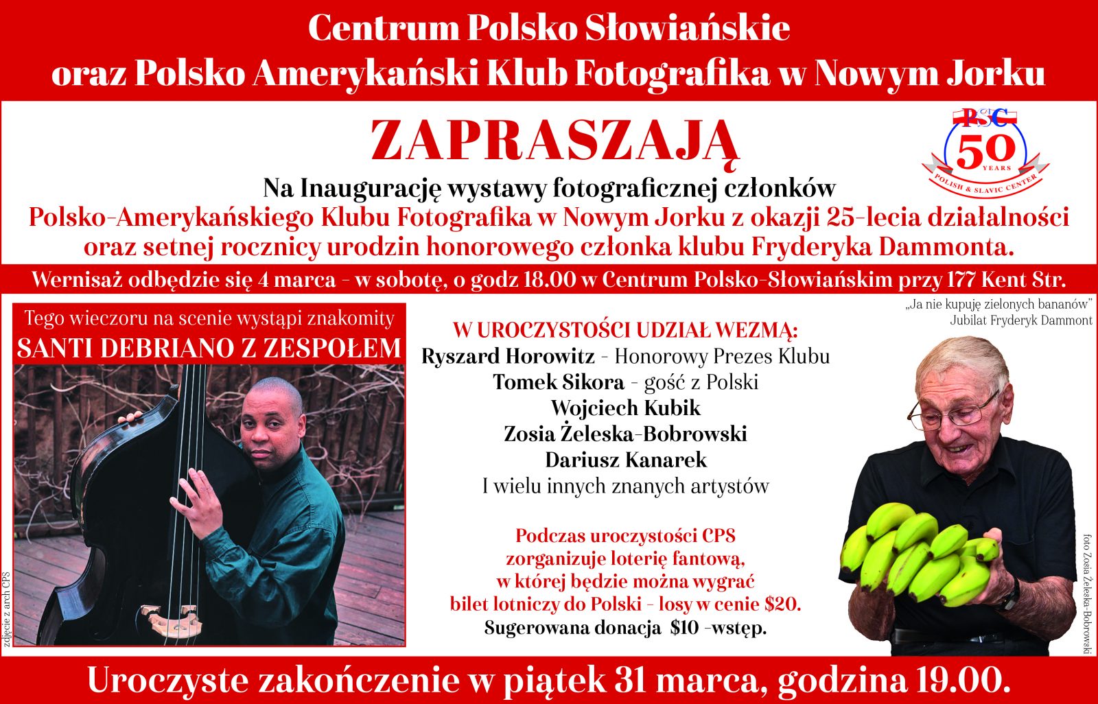 Centrum Polsko-Słowiańskie oraz Polsko Amerykański Klub Fotografika w Nowym Jorku zapraszają na inaugurację wystawy fotograficznej członków klubu z okazji 25-lecia działalności oraz setnej rocznicy urodzin honorowego członka klubu Fryderyka Dammonta.