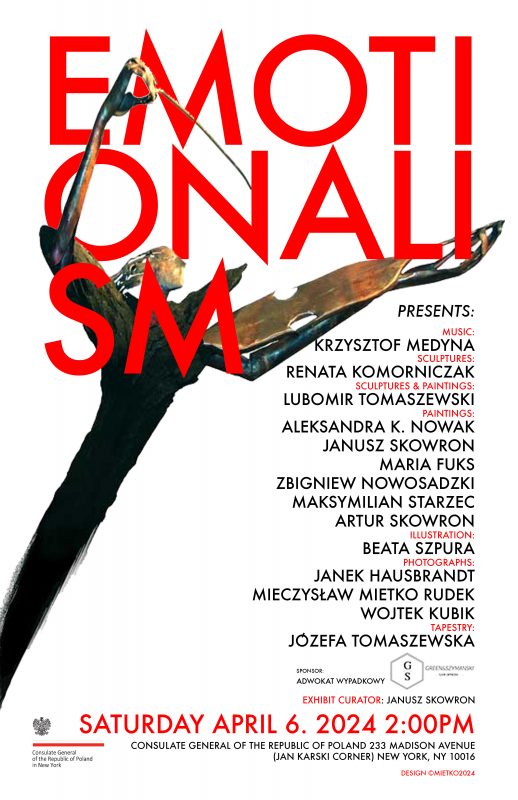 Serdecznie zapraszamy w sobotę 6 kwietnia 2024 r. o godz. 14:00 do Konsulatu Generalnego RP na wernisaż wystawy pt. „EMOTIONALISM”