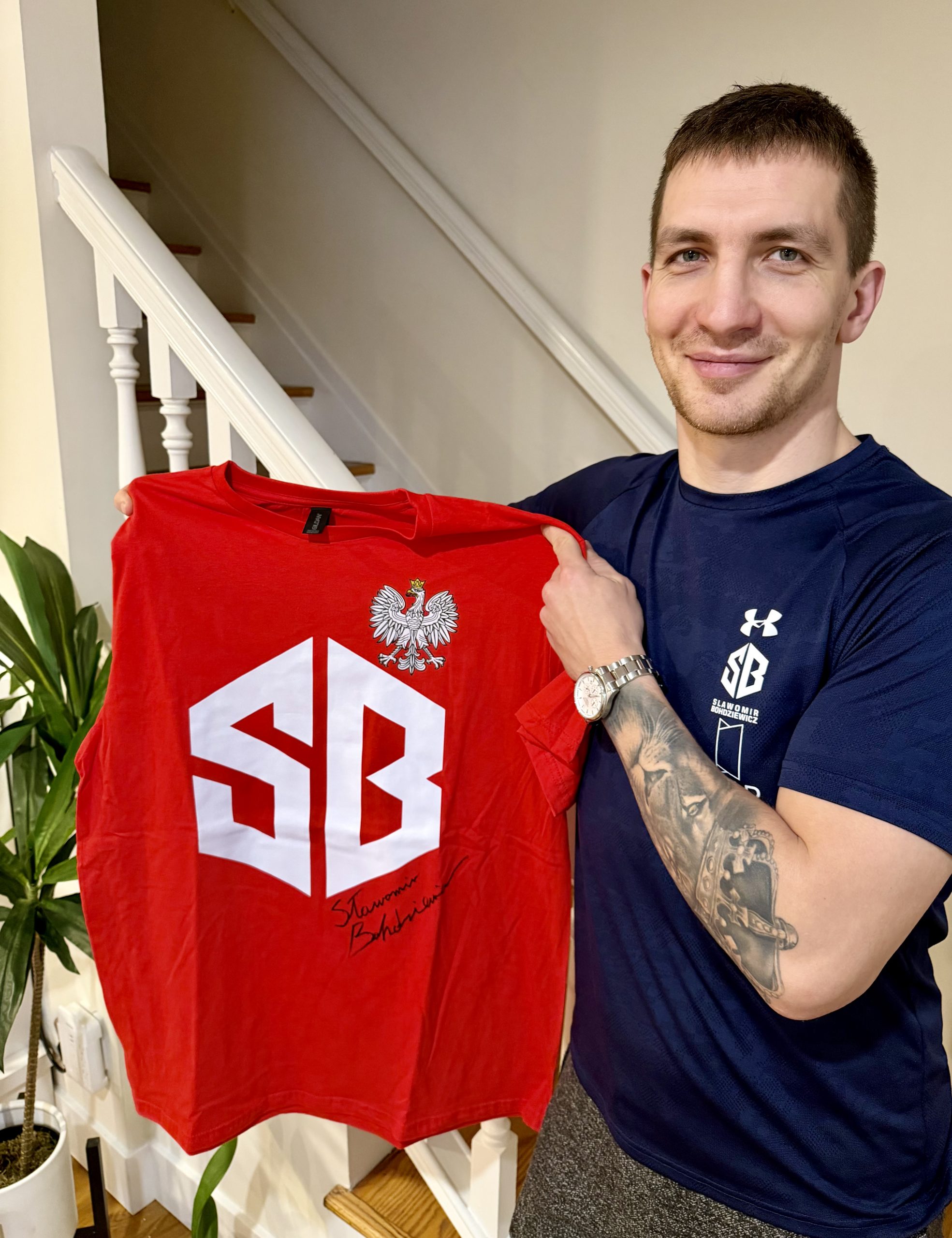 * koszulka z autografem pięściarza wagi junior ciężkiej Sławomira Bohdziewicza podarowana osobiście przez boksera;