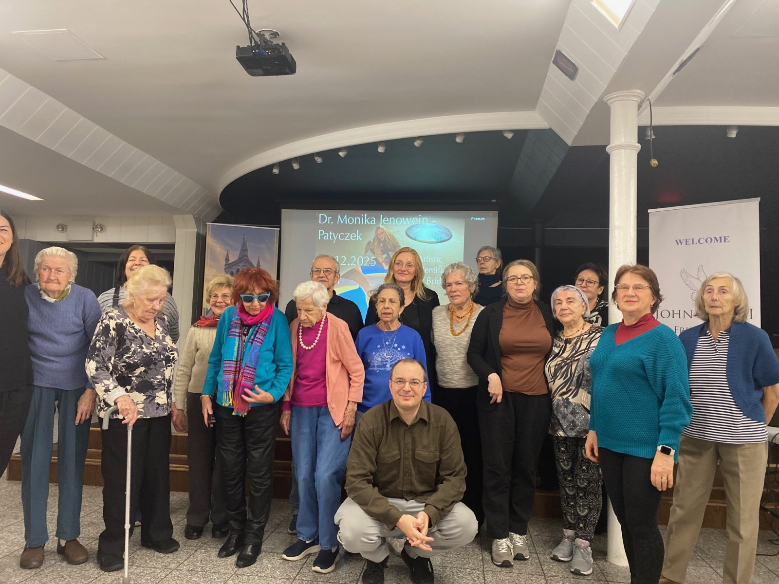 1 grudnia w Klubie im. Jana Pawła II działającym przy Centrum Polsko-Słowiańskim odbył się wykład–prezentacja dr Moniki Jenowein – badaczki, edukatorki i animatorki kultury, która od lat zajmuje się tematyką relacji międzyludzkich, komunikacji oraz społecznych mostów łączących pokolenia. Dr Jenowein, przebywająca przez ostatnie dwa miesiące na rezydencji artystycznej, podzieliła się także swoimi refleksjami na temat instalacji artystycznej „Sztuka Połączeń. Identyfikacja Połączeń Mostów”, prezentowanej w Centrum Seniora im. Jana Pawła II. Jest to projekt, który w wyjątkowy sposób łączy sztukę ze społeczną misją, a jego główna idea koncentruje się na budowaniu mostów między ludźmi – zarówno symbolicznie, jak i praktycznie.