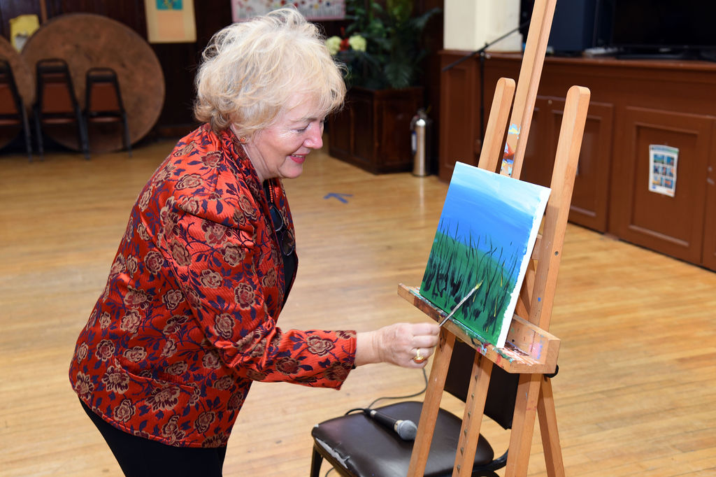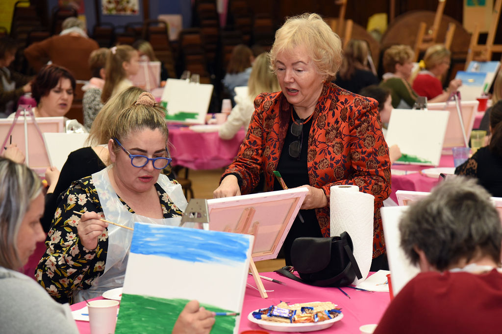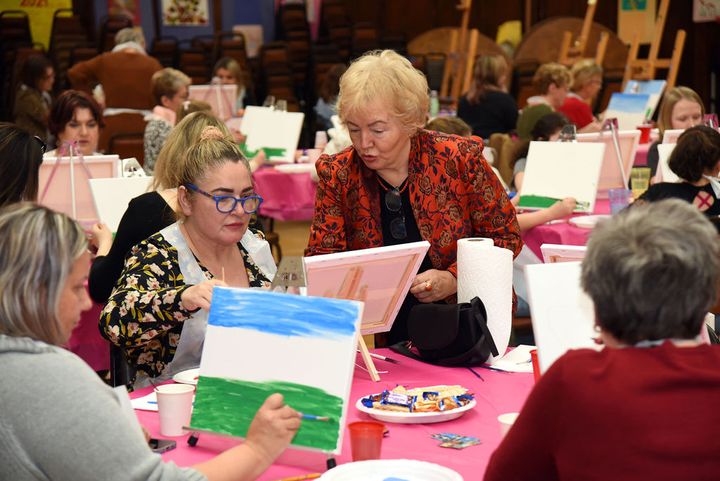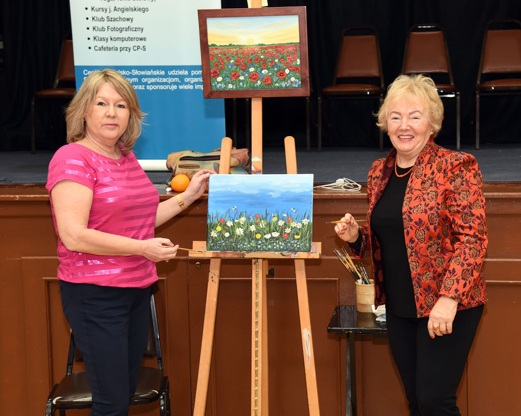 Pani Ewa udzielała fachowych wskazówek tak, aby każdy mógł wyjść z CP-S z pięknie namalowanymi przez siebie obrazem.