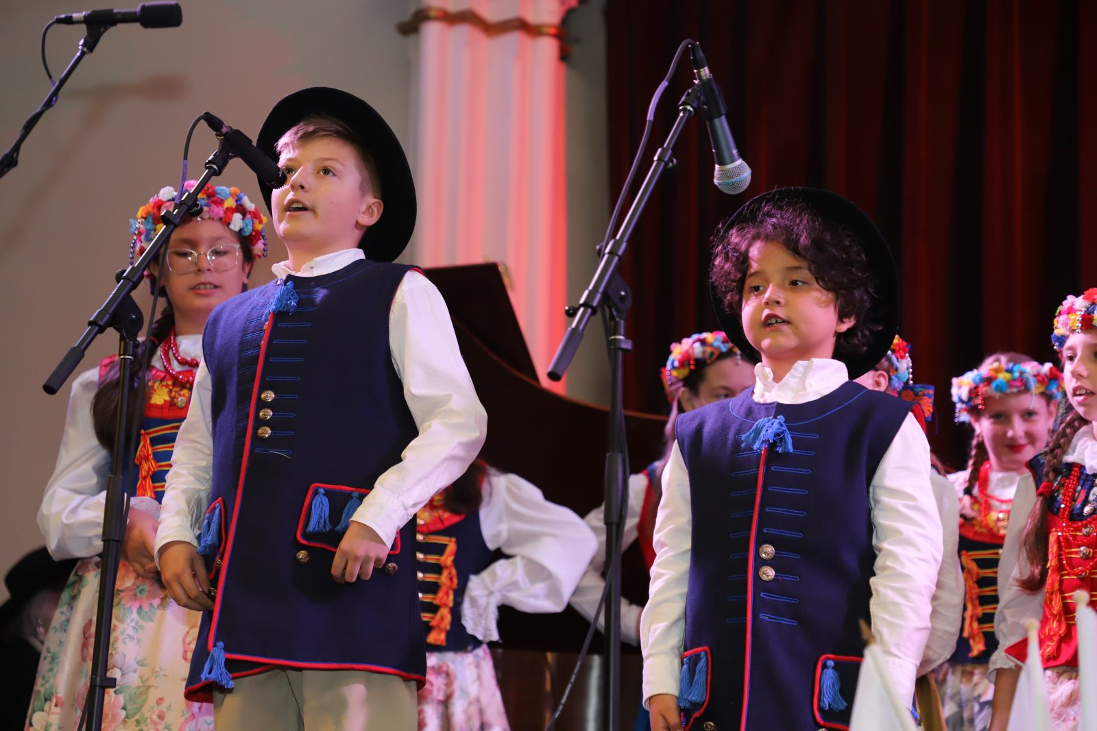 Dziecięcy zespół ludowy działajcy przy parafii Św.Stanisława Kostki, Krakowianki i Górale, pod dyrekcją Marii Bielskiej, Joanny Biz, Elżbiety Hetnar, przy akompaniamencie Haliny Kalitki, ubrany w stroje śląskie wykonał pieśni śląskie.