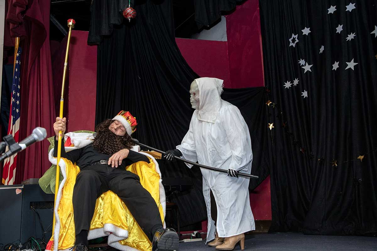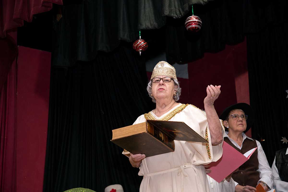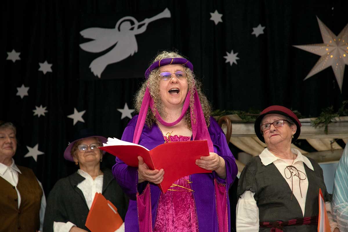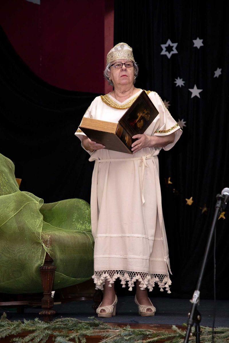 A całą historię spisaną w prastarej księdze opowiedział nam Kronikarz – Grażyna Ostrowska przy dźwiękach pianina, na którym grała pani Ola Watras oraz kolęd śpiewanych przez wszystkich aktorów.