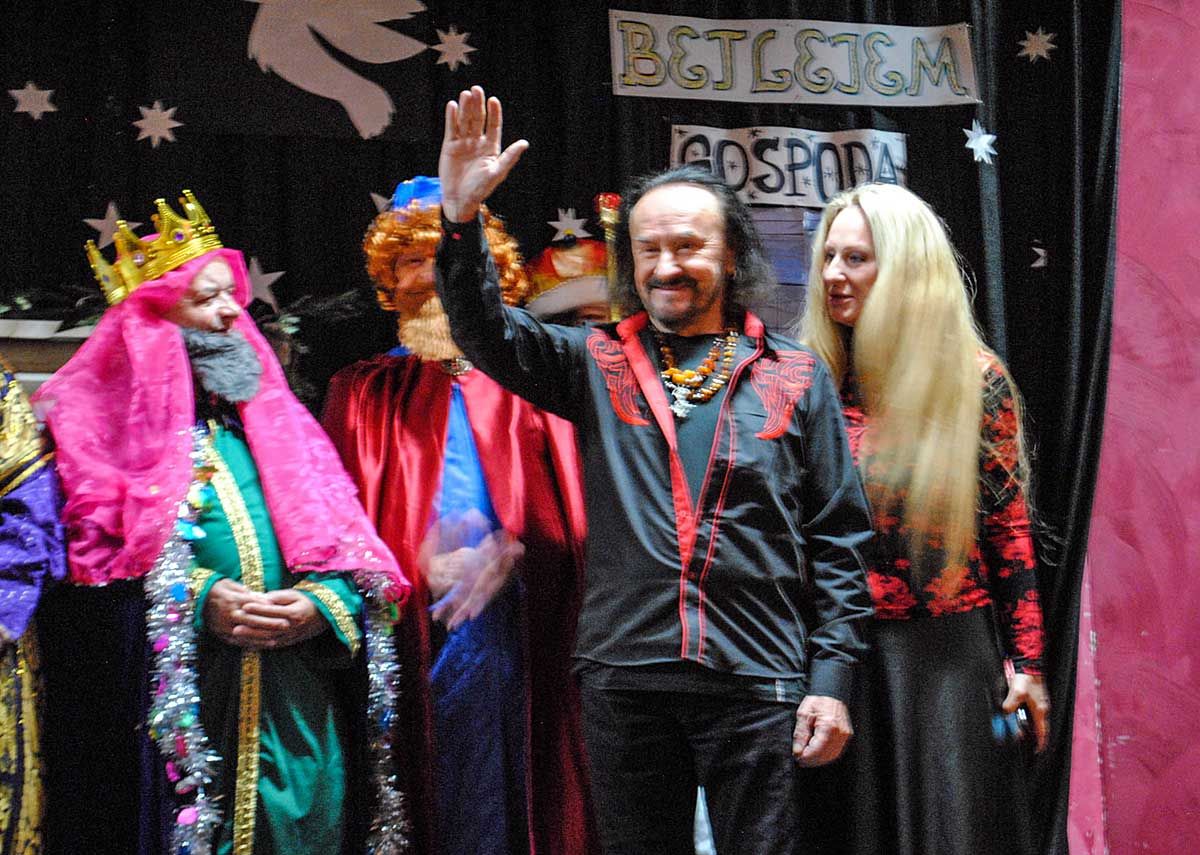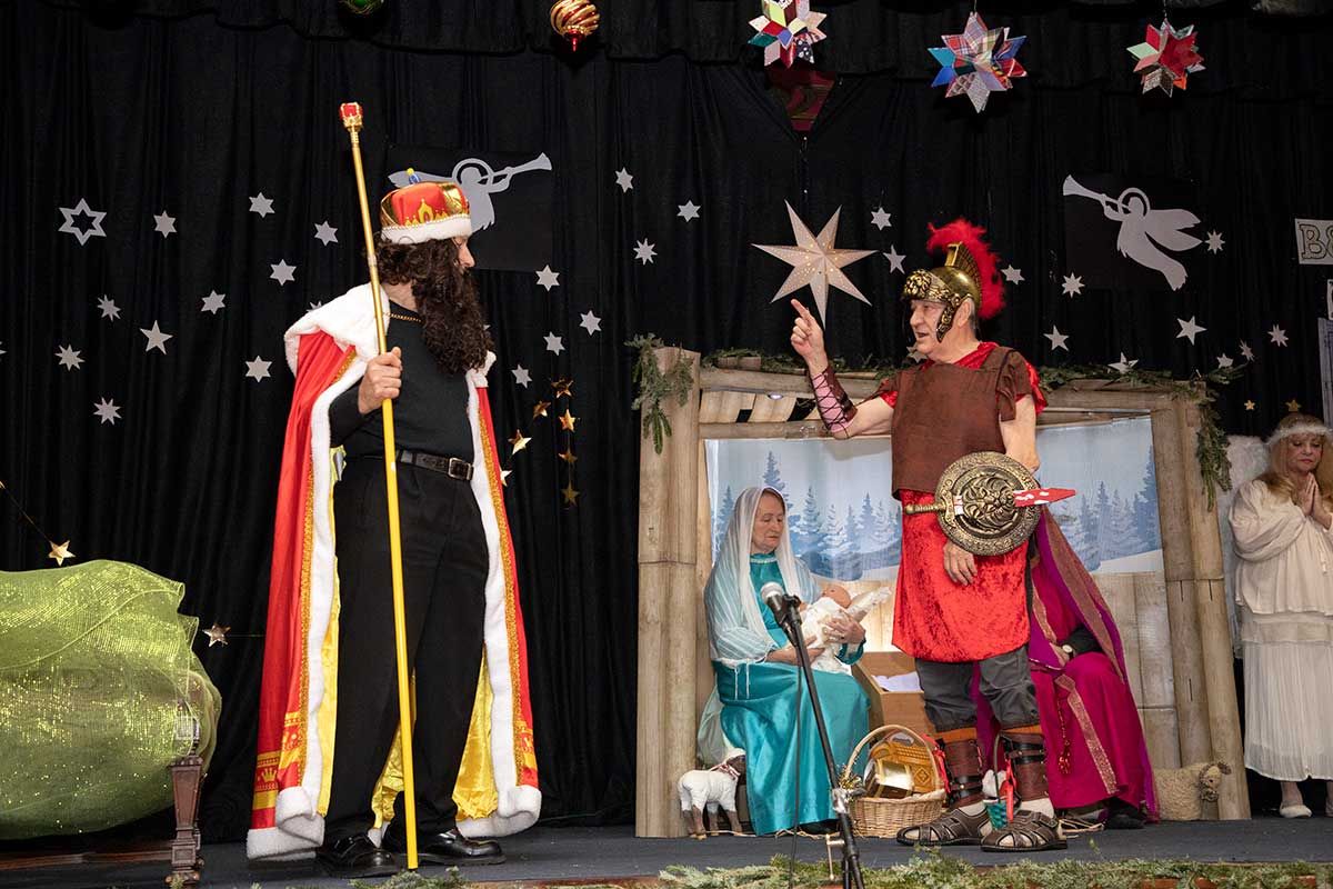 Za blaskiem Betlejemskiej Gwiazdy podążali z darami, w pięknych i kosztownych szatach z długimi brodami Trzej Królowie, Król Melchior – Alojzy Jaksik ze złotem, Król Baltazar – Stanisław Kulczycki z kadzidłem oraz Król Kacper – Anatol Kiryluk z mirrą. Na ich drodze staje w czerwonym płaszczu Król Herod – Tadeusz Nowak, władca okrutny panowania chciwy, który czyha na życie dzieciny. Wysyła szybko swojego Żołnierza – Waldemar Ostrowski, aby zabił chłopców z Betlejem. Na nic poszły wysiłki Heroda ale za to przyszła na niego kara, Śmierć- Małgorzata Posłuszna mu głowę ścięła a za te przekręty i zbytki Diabeł- Wojciech Żebrowski do piekła widłami pogonił.