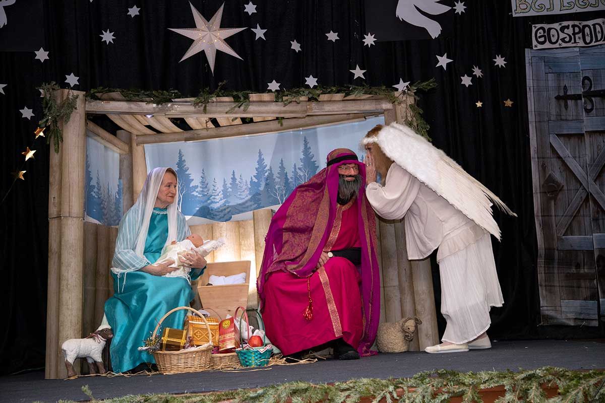 W roli Anioła, który swoim pięknym aktorskim głosem opowiedział pastuszkom wielką nowinę i chronił swoimi skrzydłami boską dziecinę, wcieliła się pani Anna Kucay. Pastuszkowie, którzy z darami udali się do żłobka to Szymek – Halina Jaworska, Jasio – Małgorzata Posłuszna, Staszek – Julia Garbacz, Antek– Zofia Wiszniewska, Franek – Marianna Prusaczyk oraz Filip – Mieczysława Jaksik. Przy żłobku zaś zasiedli Józef – Krzysztof Zieliński i Maryja – Jadwigę Szałyga. Gospodarza, który nie dał im noclegu zgrał pan Waldemar Ostrowski.