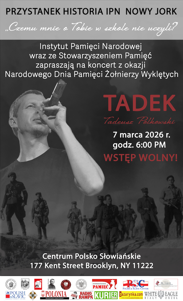 – sobota 7 marca, godz 6.00pm w Centrum Polsko-Słowiańskim, 177 Kent Street Brooklyn, NY 11222
