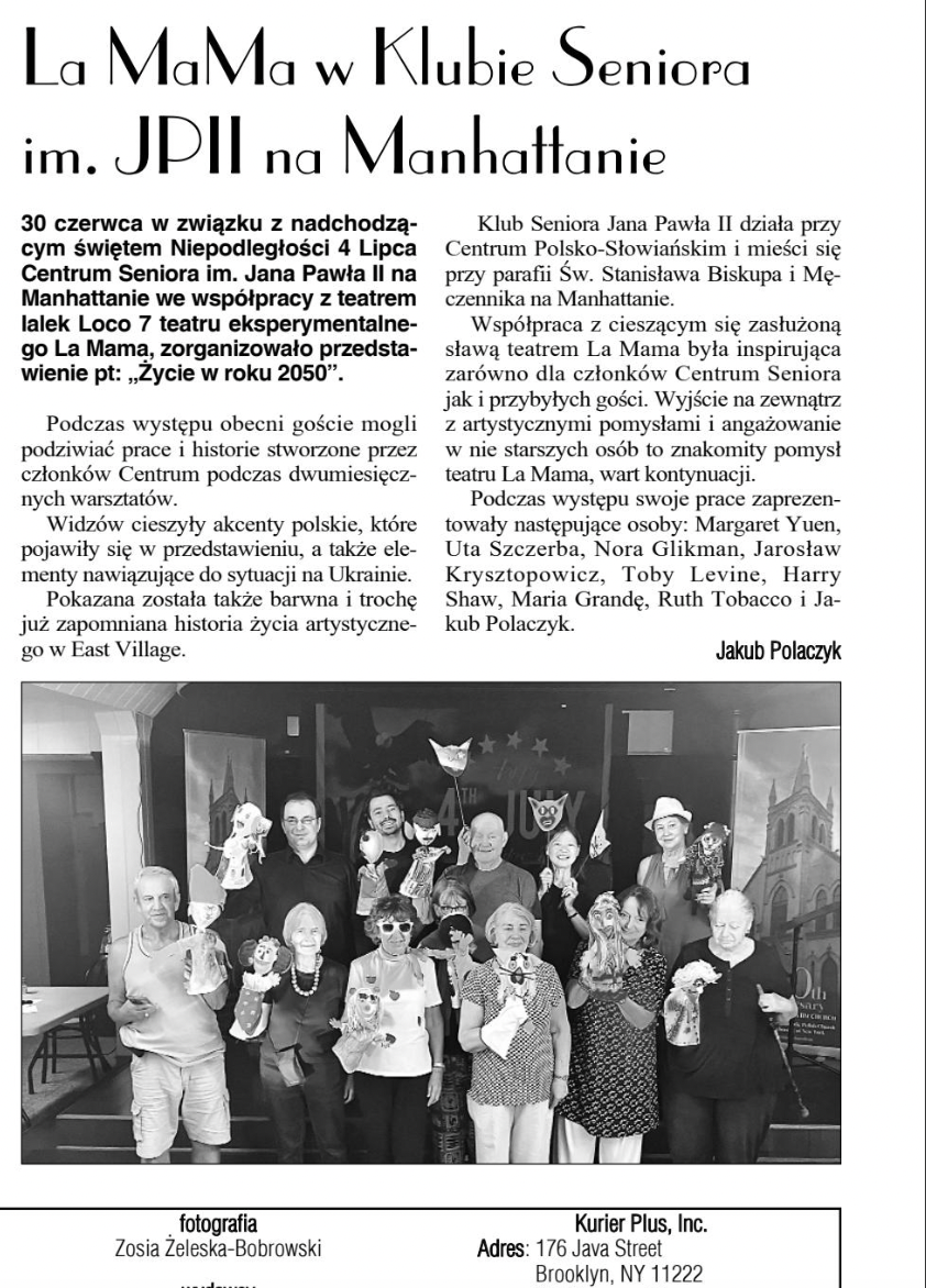 KLUB SENIORA-JP II, MEDIA O PSCLa Mama w Klubie Seniora JP2 na Manahattanie w Kurier + Posted on July 19, 2023 by Administrator