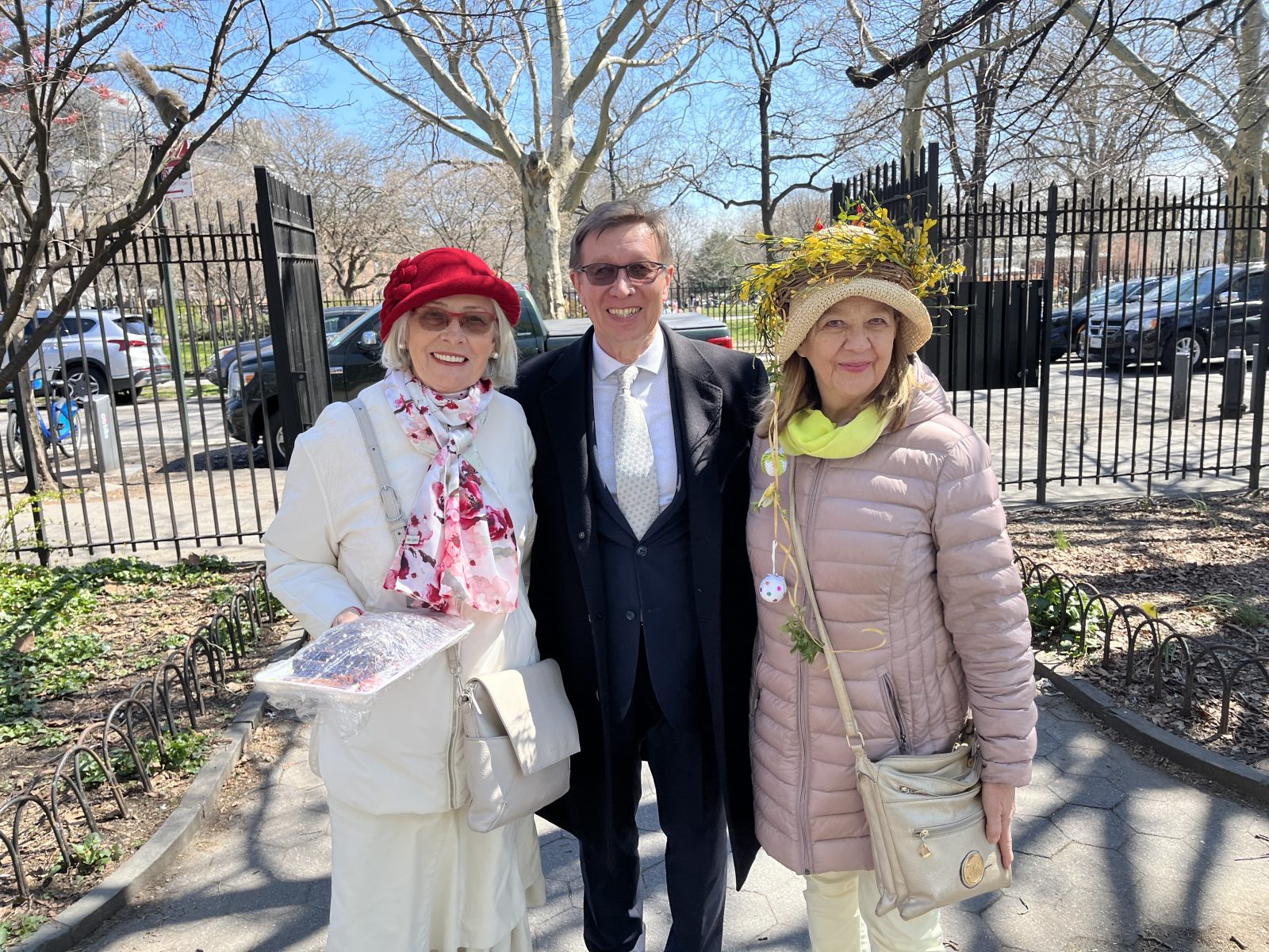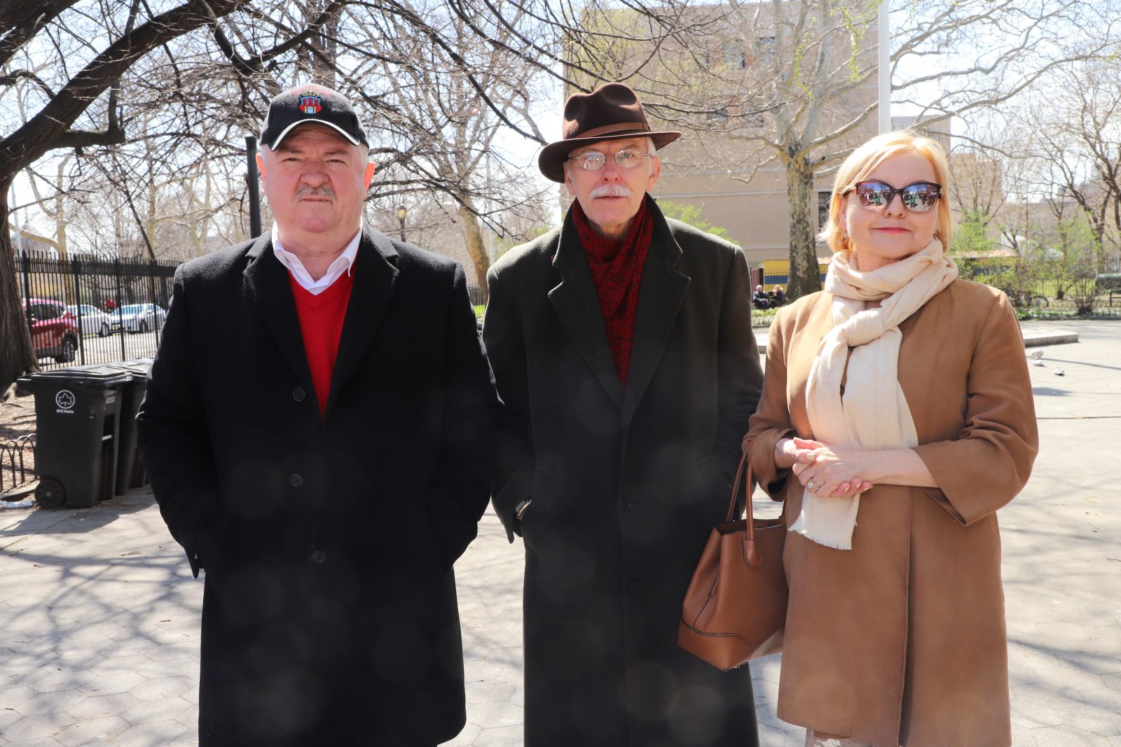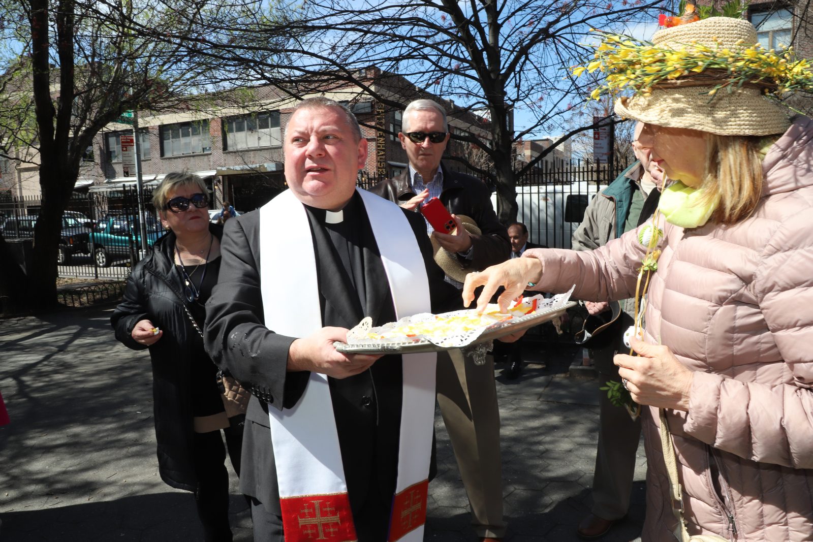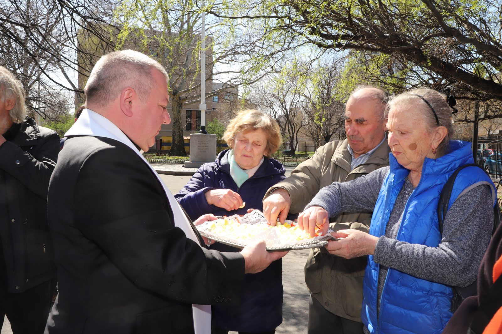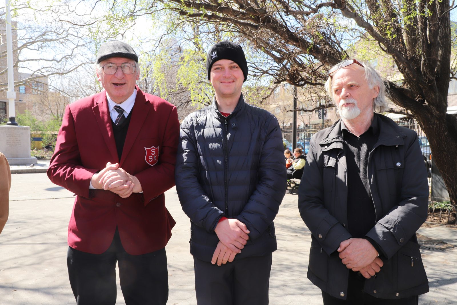 Z inicjatywy seniorów Klubu Krakus działającego w Centrum Polsko Słowiańskim, w niedzielę wielkanocną, 31 marca miało miejsce trzecie już spotkanie przy pomniku księdza Jerzego Popiełuszki na Greenpoincie. Uczestniczyli w nim również członkowie Northside Senior Center z Williamsburga, znajomi oraz przygodni przechodnie. Obecnością swoją zaszczycili nas: prezes Centrum Polsko Słowiańskiego, Marian Żak z małżonką Małgorzatą, nowy prezes Polsko-Amerykańskiego Klubu Fotografika, Dariusz Kanarek, który przybył z ojcem, Krzysztofem Kanarkiem, byłym śpiewakiem z Mazowsza i solistą Operetki Warszawskiej. Zaproszony ksiądz Grzegorz Markulak, proboszcz Parafii Św. Stanisława Kostki na Greenpoincie powiedział „Po zakończeniu 40 dniowego czasu Wielkiego Postu gromadzimy się w Uroczystość Zmartwychwstania Pańskiego. W naszych sercach jest wielka radość, bo Chrystus żyje i jest pośród nas. Razem z nim jesteśmy tu w tej wspólnocie przy Wielkanocnym stole, by dzielić się miłością, składać sobie wzajemnie życzenia, dzielić się poświęconym jajkiem, znakiem nowego życia. Prośmy Chrystusa zawsze obecnego wśród tych, którzy Go miłują, aby pobłogosławił pokarmy na naszym wielkanocnym stole”. Po odmówieniu Litanii dziękczynnej i modlitwy poświęcił pokarmy wielkanocne oraz pobłogosławił zebranych.