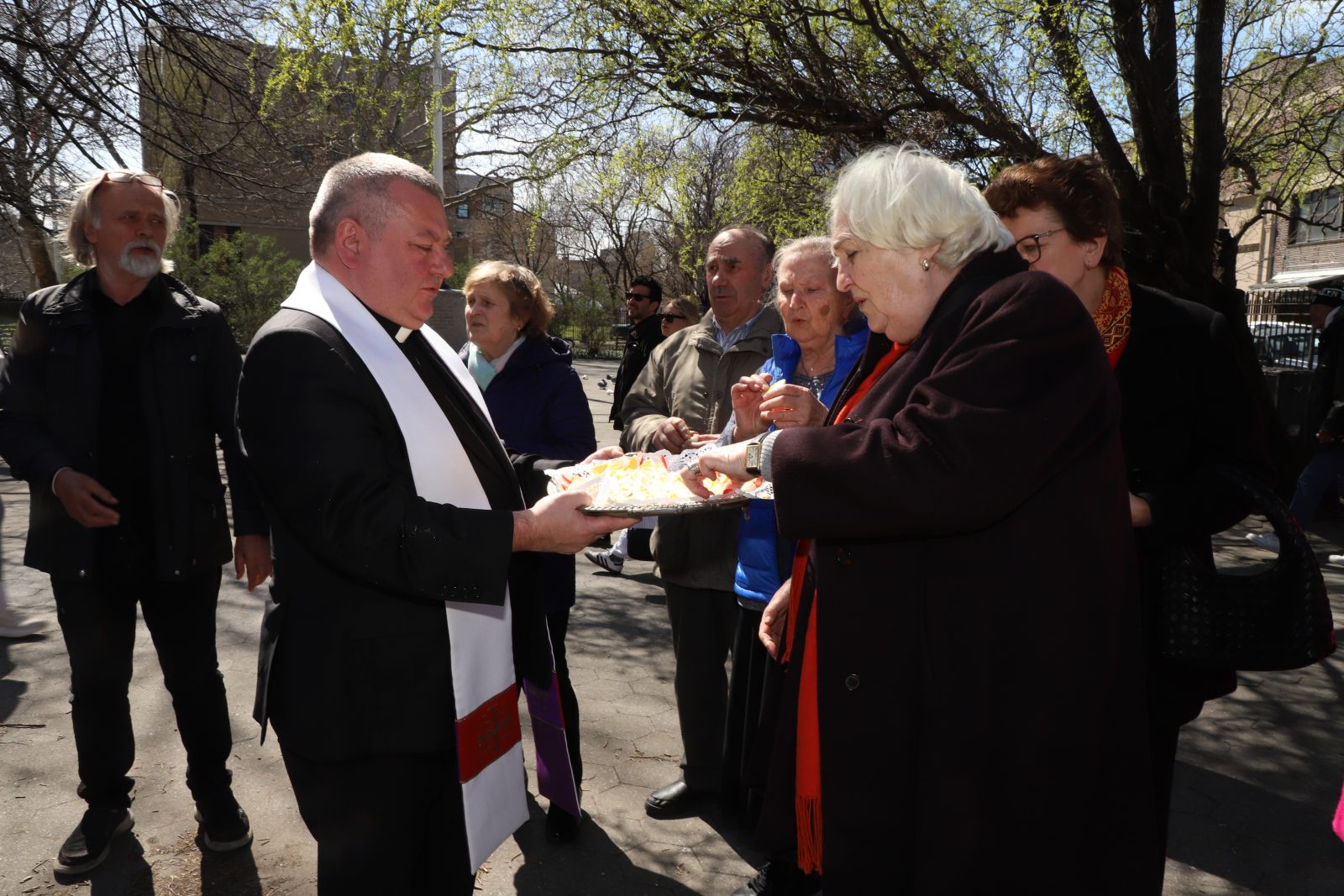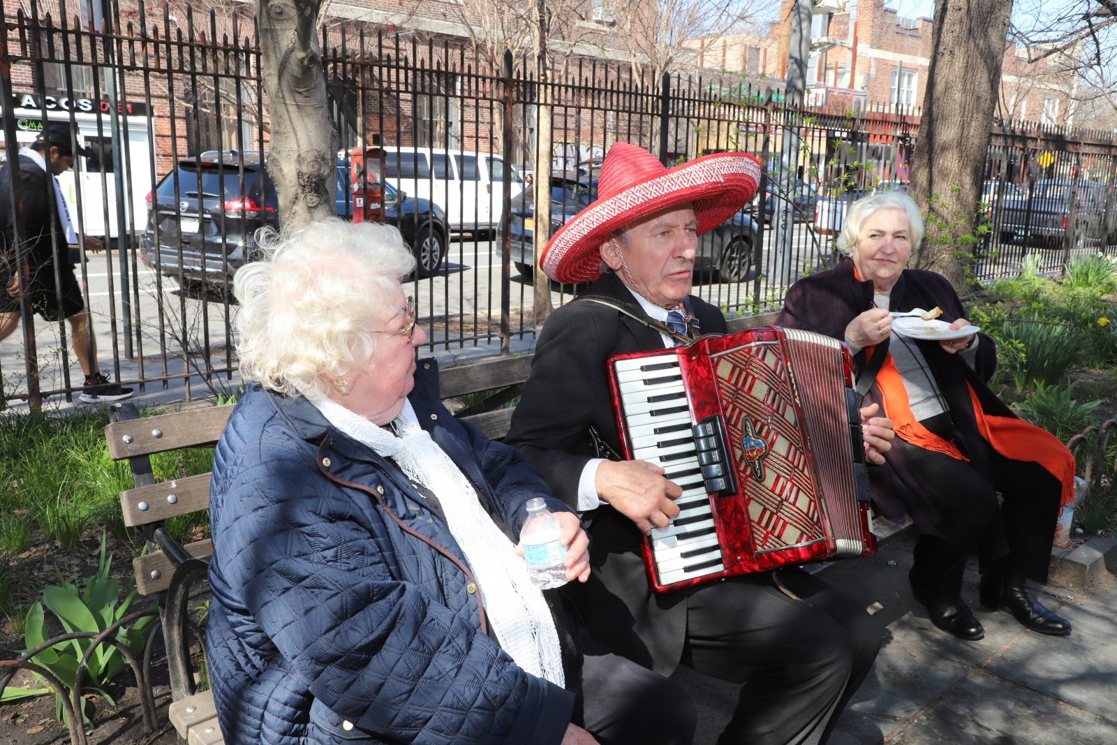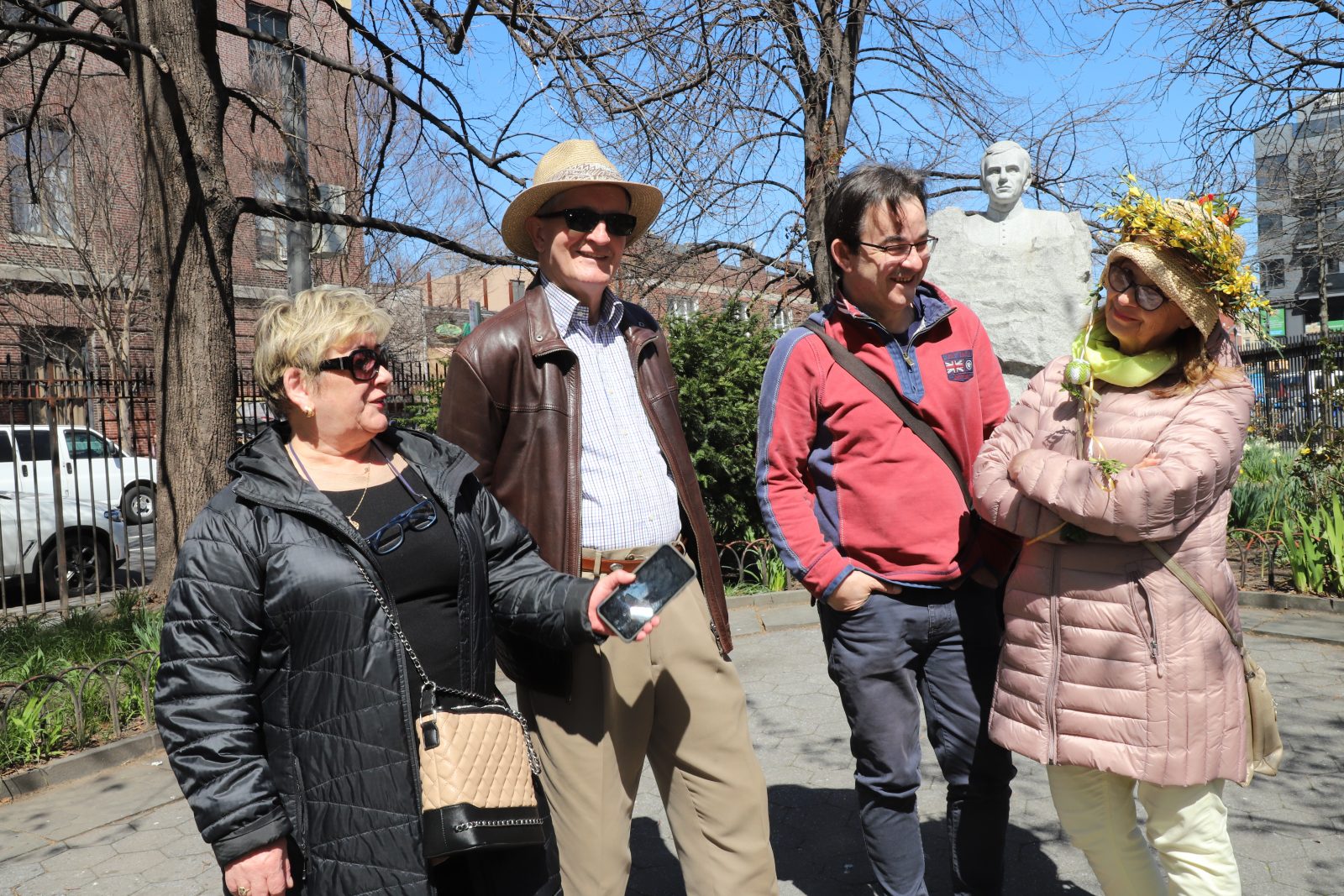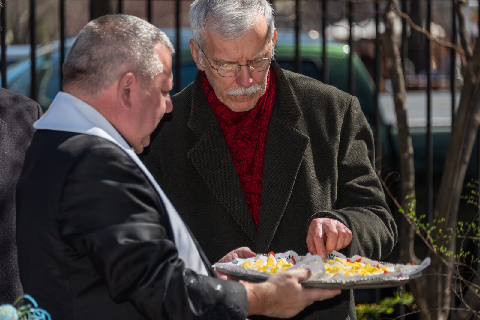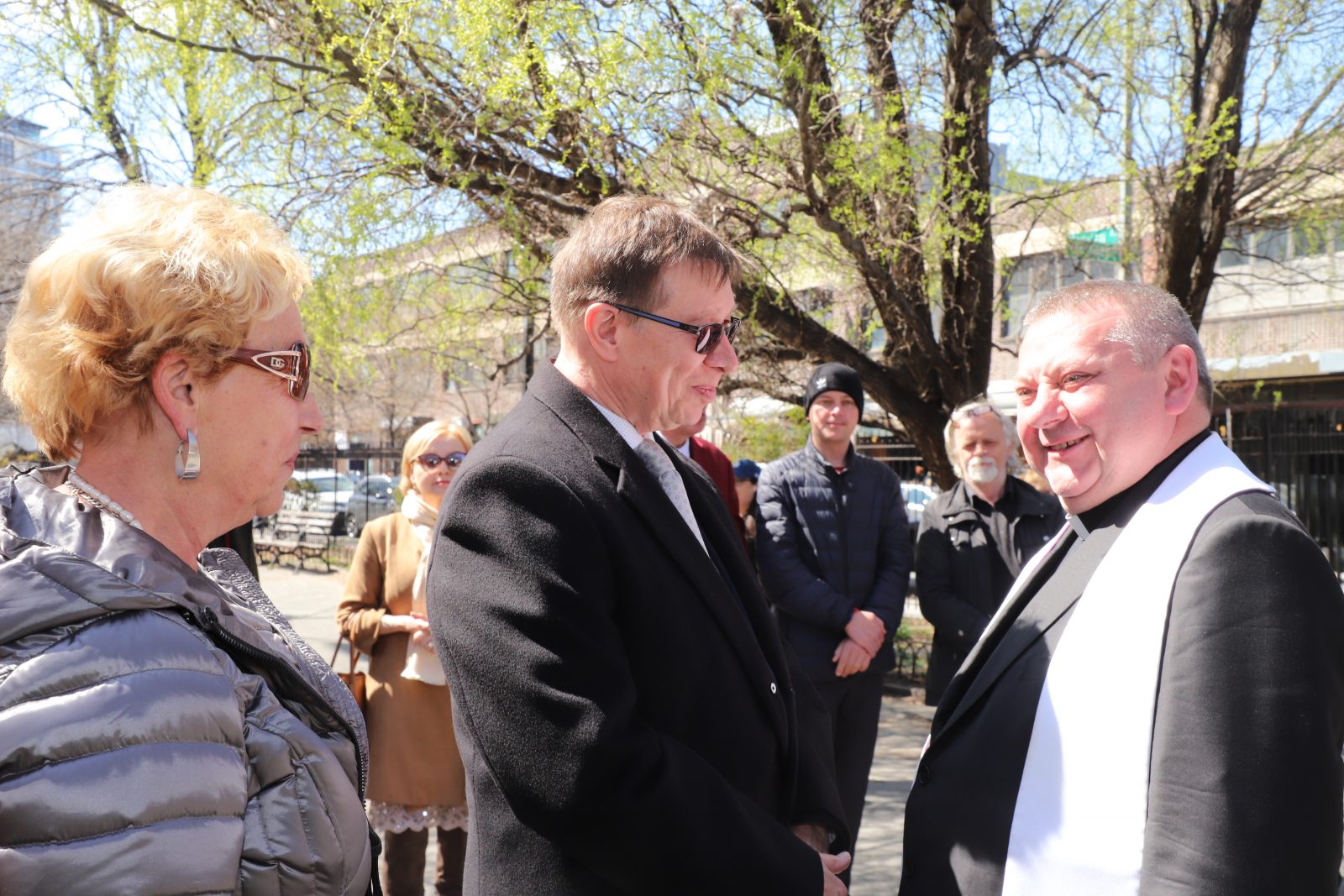 Z inicjatywy seniorów Klubu Krakus działającego w Centrum Polsko Słowiańskim, w niedzielę wielkanocną, 31 marca miało miejsce trzecie już spotkanie przy pomniku księdza Jerzego Popiełuszki na Greenpoincie. Uczestniczyli w nim również członkowie Northside Senior Center z Williamsburga, znajomi oraz przygodni przechodnie. Obecnością swoją zaszczycili nas: prezes Centrum Polsko Słowiańskiego, Marian Żak z małżonką Małgorzatą, nowy prezes Polsko-Amerykańskiego Klubu Fotografika, Dariusz Kanarek, który przybył z ojcem, Krzysztofem Kanarkiem, byłym śpiewakiem z Mazowsza i solistą Operetki Warszawskiej. Zaproszony ksiądz Grzegorz Markulak, proboszcz Parafii Św. Stanisława Kostki na Greenpoincie powiedział „Po zakończeniu 40 dniowego czasu Wielkiego Postu gromadzimy się w Uroczystość Zmartwychwstania Pańskiego. W naszych sercach jest wielka radość, bo Chrystus żyje i jest pośród nas. Razem z nim jesteśmy tu w tej wspólnocie przy Wielkanocnym stole, by dzielić się miłością, składać sobie wzajemnie życzenia, dzielić się poświęconym jajkiem, znakiem nowego życia. Prośmy Chrystusa zawsze obecnego wśród tych, którzy Go miłują, aby pobłogosławił pokarmy na naszym wielkanocnym stole”. Po odmówieniu Litanii dziękczynnej i modlitwy poświęcił pokarmy wielkanocne oraz pobłogosławił zebranych.