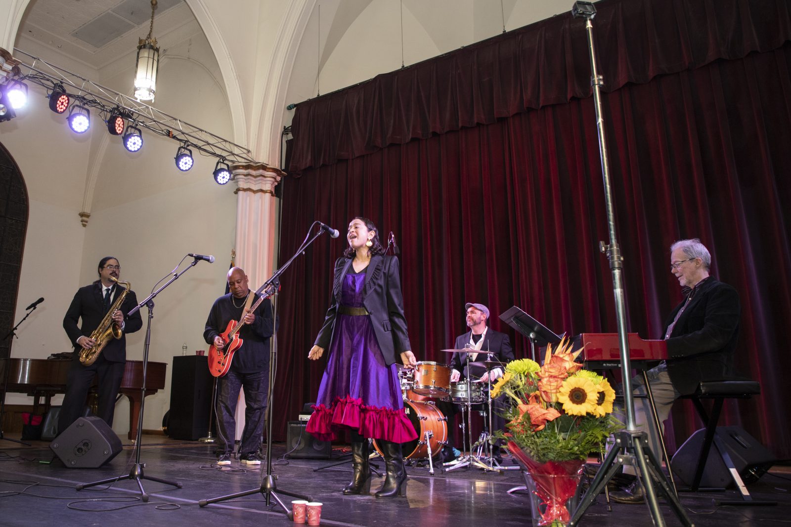 W czasie wernisażu wystąpił świetny zespół jazzowy Santi Debriano z doskonałą solistką Niną Shankar.