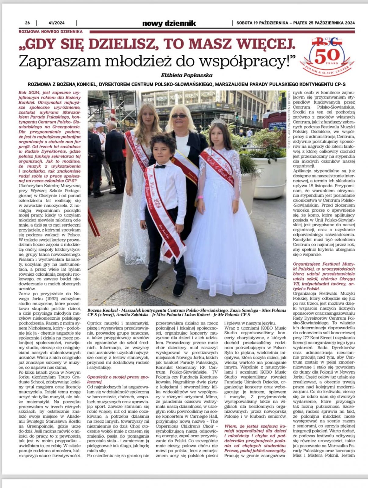 MEDIA O PSCNowy Dziennik: “Rozmowa z Bożeną Konkiel, Dyrektorem Centrum Polsko-Słowiańskiego, Marszałkiem Parady Pułaskiego Kontyngentu CP-S” Posted on October 21, 2024 by Administrator