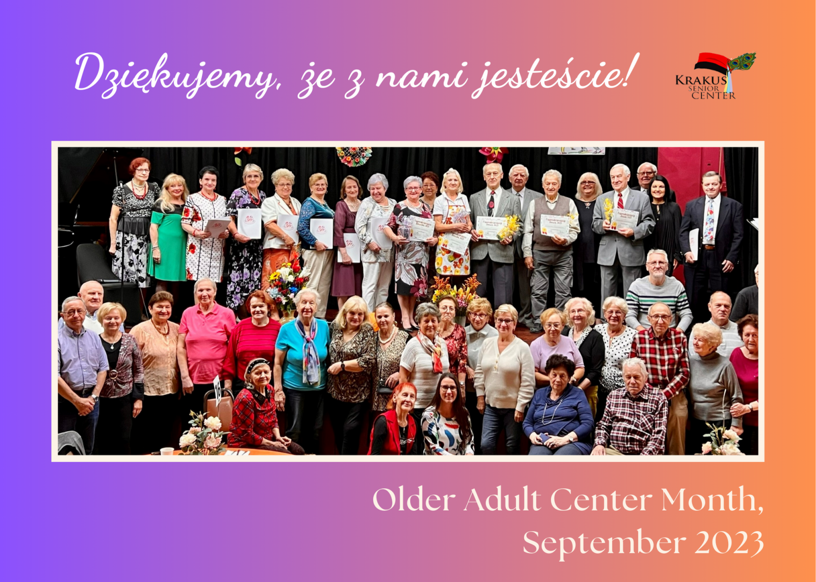 Dziś w Klubie Seniora “Krakus” świętowaliśmy Older Adults Center Month! Każdy z członków naszego klubu otrzymał drobny upominek: pamiątkowe zdjęcie wszystkich naszych klubowiczów!