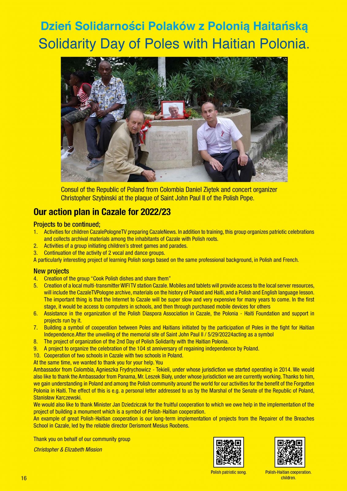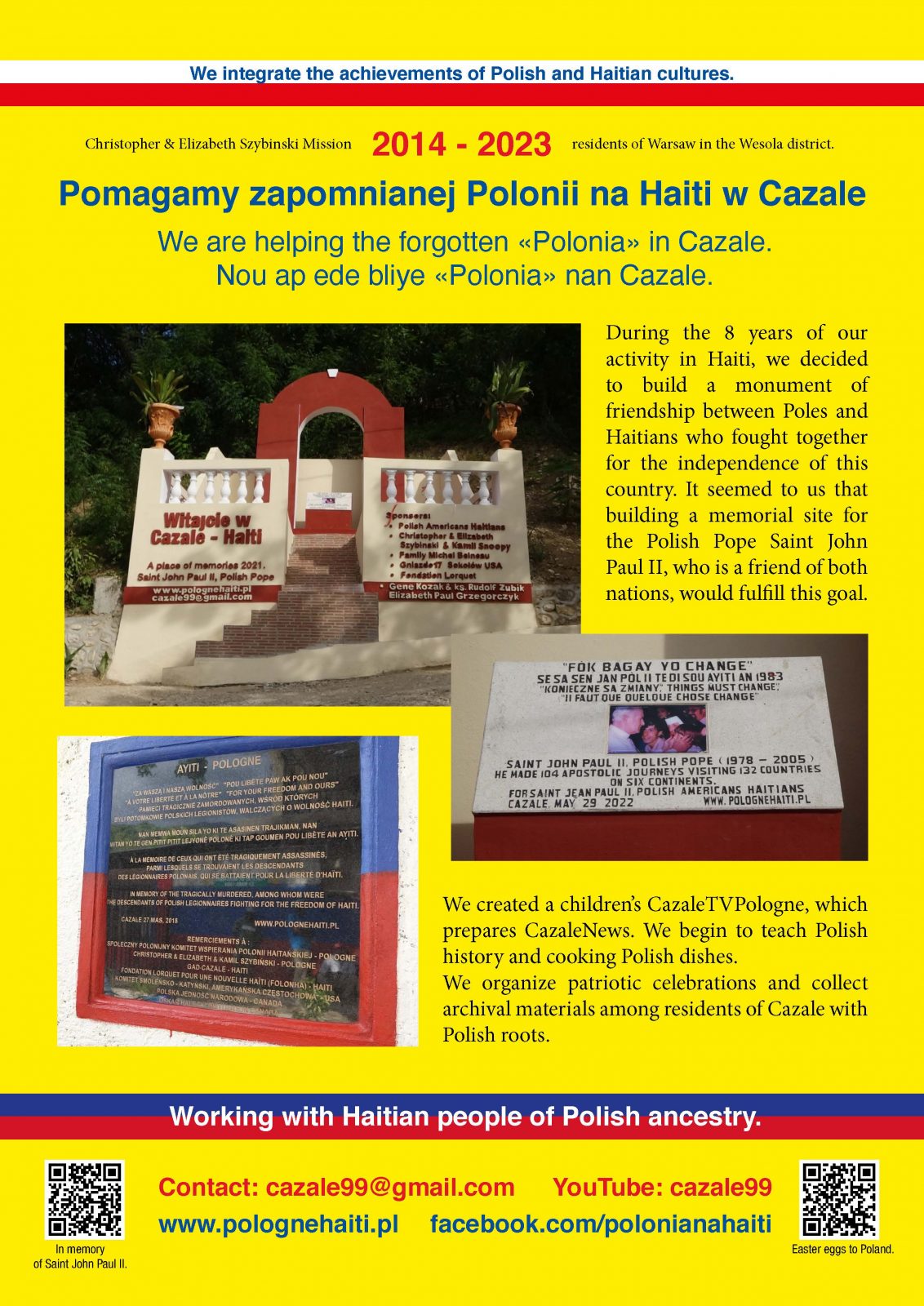 Jest tam też informacja o możliwości dalszego nas wspierania nas w ” Odbudowywaniu Polskości i wzmacnianiu poczucia przynależności do Polski wśród Polonii na Haiti.