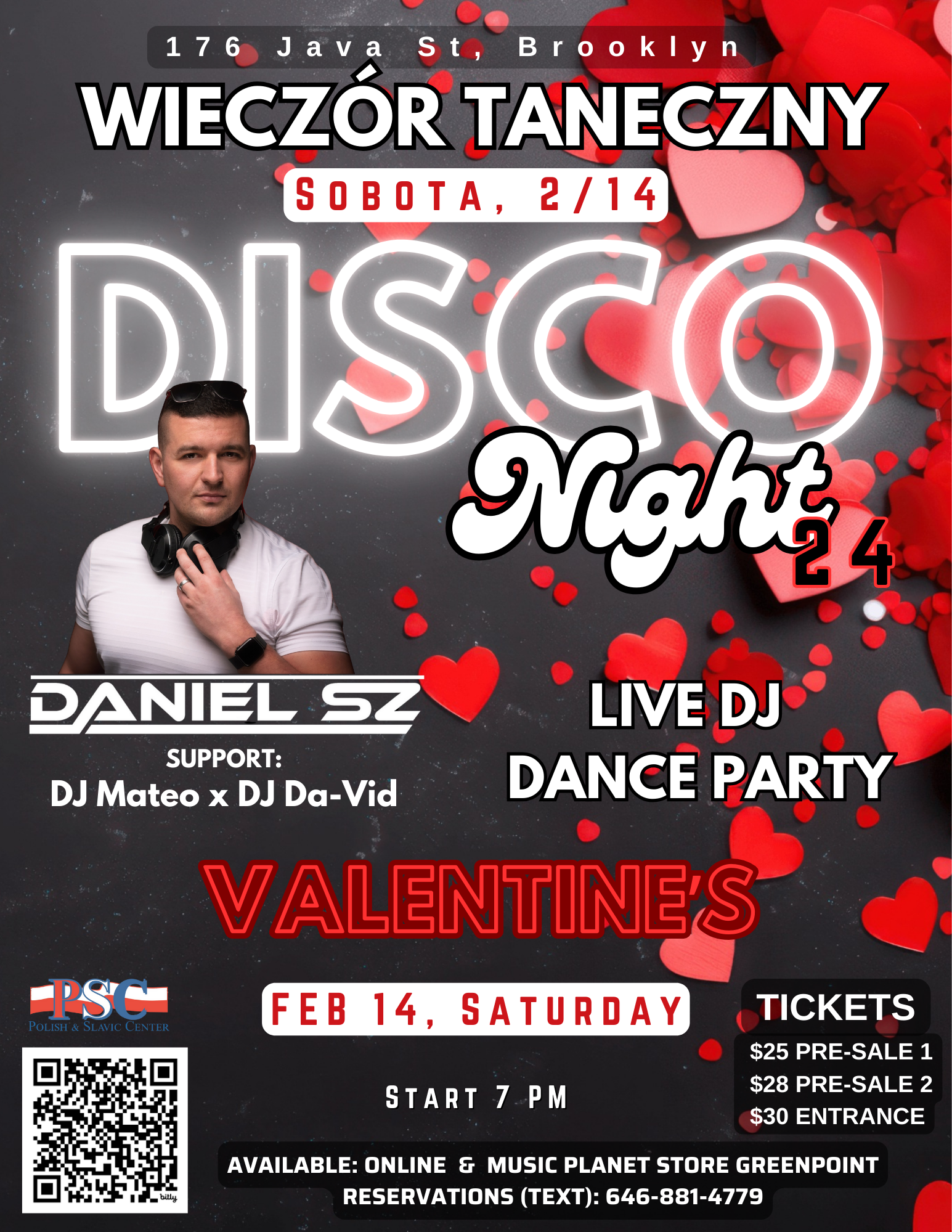 Disco Night 24 – Walentynki,  Sobota, 14 lutego, 2026, 7:00 PM