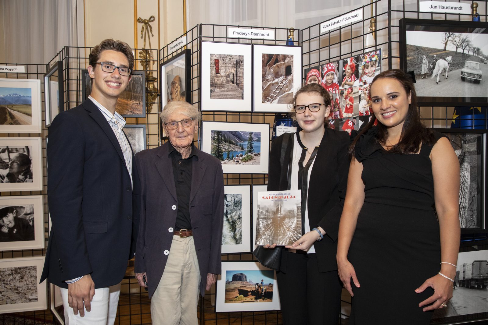 101 letni Fryderyk Dammont, drugi z lewej w otoczeniu młodzieży, od lewej Matt Klimek, druga generacja, Julia Wójcik i Violetta Maya Koss, trzecia generacja, członków Klubu.