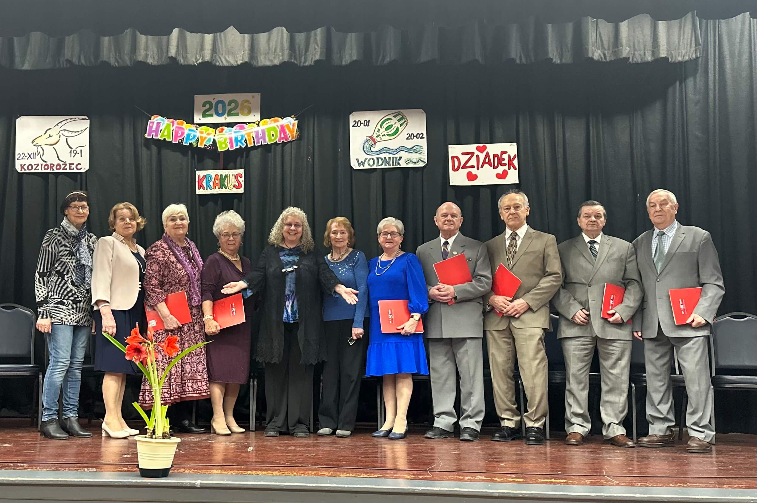 Styczniowe obchody urodzin w Klubie Seniora Krakus , działającym przy Centrum Polsko Słowiańskim, były prawdziwym świętem radości, wspólnoty i dobrej zabawy. Sala wypełniła się uśmiechami, muzyką i wyjątkowo ciepłą, taneczną atmosferą. Uroczystość rozpoczął wspaniały występ Chóru Krakus pod dyrekcją Kasi Drucker, który zachwycił publiczność i stworzył piękny, wzruszający nastrój. Po części artystycznej na uczestników czekał słodki poczęstunek — tradycyjne polskie pączki smakowały wyśmienicie i umiliły wspólne świętowanie. W styczniu mieliśmy wyjątkowo wielu jubilatów — wszystkim solenizantom składamy serdeczne życzenia zdrowia, szczęścia, miłości oraz wielu kolejnych lat pełnych uśmiechu i aktywności.Dziękujemy, że mogliśmy świętować razem z Wami! Po obiedzie rozpoczęła się zabawa urodzinowa przy muzyce DJ-a. Parkiet szybko zapełnił się tańczącymi seniorami, a dobra energia, śmiech i wspólne rozmowy trwały do samego końca wydarzenia. Takie chwile pokazują, jak ważne są spotkania, wspólna radość i aktywne spędzanie czasu w gronie przyjaciół. Dziękujemy wszystkim za obecność i już teraz nie możemy się doczekać kolejnych urodzinowych celebracji!