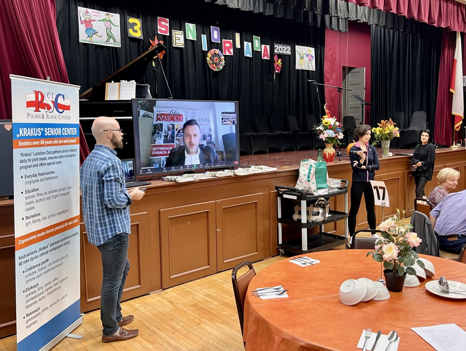 Wczorajszego popołudnia odbyła się już 3 edycja SENIORIADY, czyli święta seniora! Na członków klubu czekała moc niespodzianek przygotowanych przez pracowników. Wydarzenie otworzył dyrektor klubu wraz z dyrektor The Polish & Slavic Center (PSC), Agnieszką Granatowską. Trenerka fitness, a także nowa przedstawicielka Głos Seniora, Natalia Pruszko, zapowiedziała wspaniałego gościa, Łukasza Salwarowskiego, prezesa Głosu Seniora w Polsce, który opowiedział o swojej działalności zachęcając tym samym nowojorskich seniorów do udziału m.in. w rozmaitych konkursach i przedsięwzięciach prowadzonych przez Głos Seniora. Następnie, chór Krakus pod dyrekcja Anny Kucay przygotował genialny program, ktory zarówno rozbawił jak i wzruszył widownię. Po zakończonym występie, tradycyjnie już zostali wyłonieni laureaci konkursu na najsympatyczniejszego seniora i seniorkę. W tym roku ten zaszczytny tytuł otrzymali: Pan Waldemar, Pan Wojciech, Pan Tadeusz, Pani Danuta, Pani Marianna oraz Pani Maria. Na zwycięzców czekały atrakcyjne nagrody oraz gratulacje prosto z rąk przedstawicieli Rady Dyrektorów Centrum Polsko- Słowiańskiego. Po wspólnie spędzonym lunchu, klubowicze mieli możliwość rozerwać się podczas uwielbianej przez seniorów gry BINGO! W czasie rozgrywek towarzyszyły wszystkim niezapomniane emocje! Zwycięzcami okazali się Pan Waldemar, Pani Aniela oraz Pani Krystyna, którzy otrzymali wspaniałe nagrody ufundowane przez klub “Krakus”