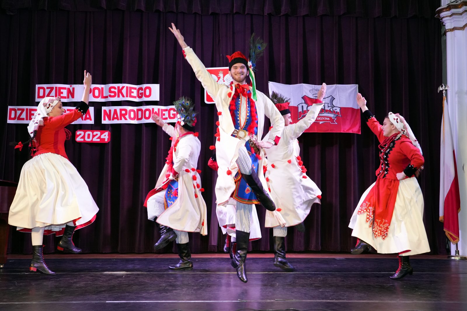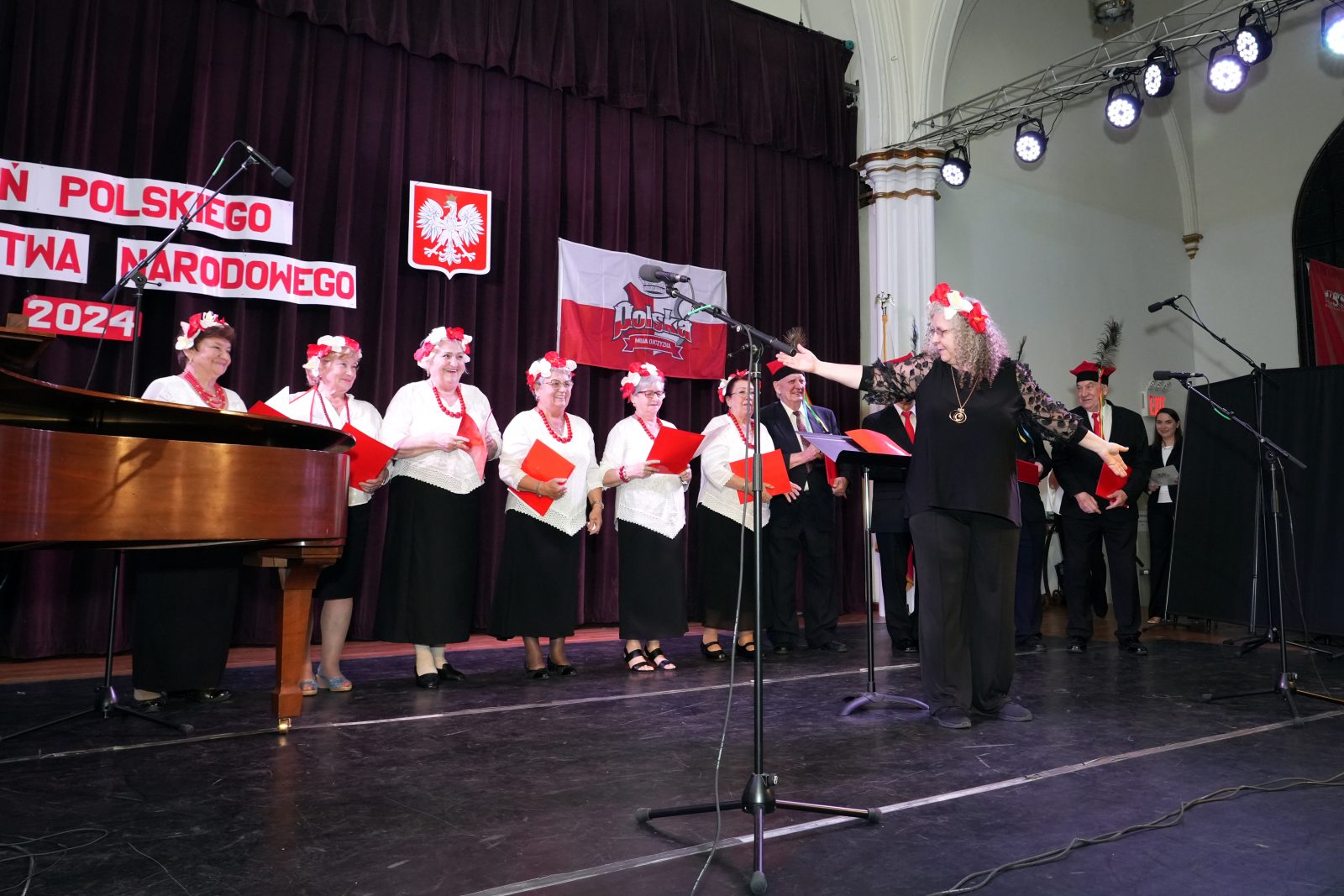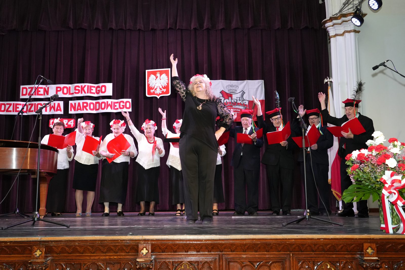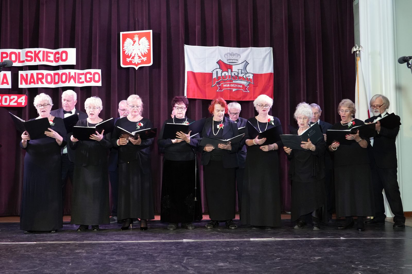 Mieliśmy też przyjemność gościć na scenie Chór Klubu Seniora Krakus, który wykonał dwa utwory “Pałacyk Michla” i “Kukułeczka”, Chór Jutrzenka, który zaśpiewał “Szarą Piechotę” oraz “Let There be Peace of Earth”; Chór Angelus, który zaprezentował “Ojczyzno ma” i “Uwierz Polsko”, Chór Hejnał, który wykonał “Ziemię Polską” Feliksa Nowowiejskiego oraz piosenkę ludową “Hej Nasi Jadą”.