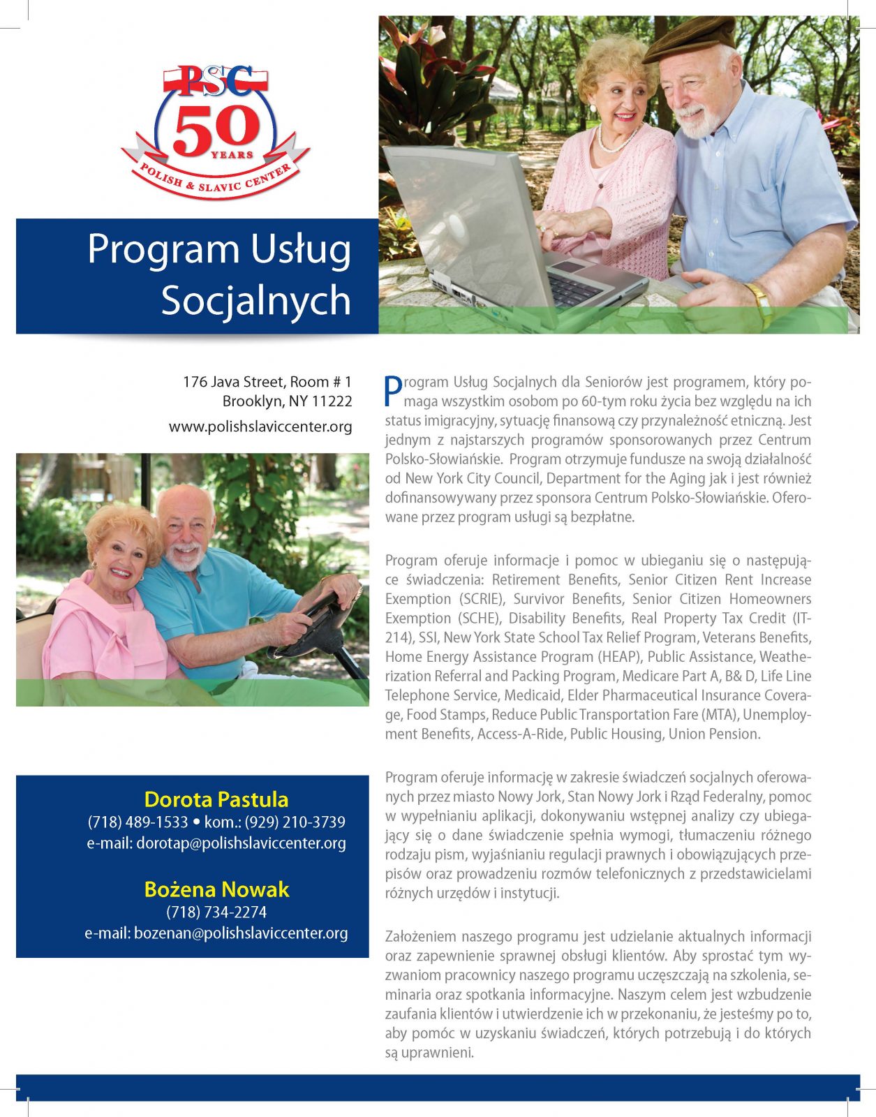 Program jest dotowany przez New York City Council, Department for the Aging i jest dofinansowywany przez Centrum Polsko-Słowiańskie.