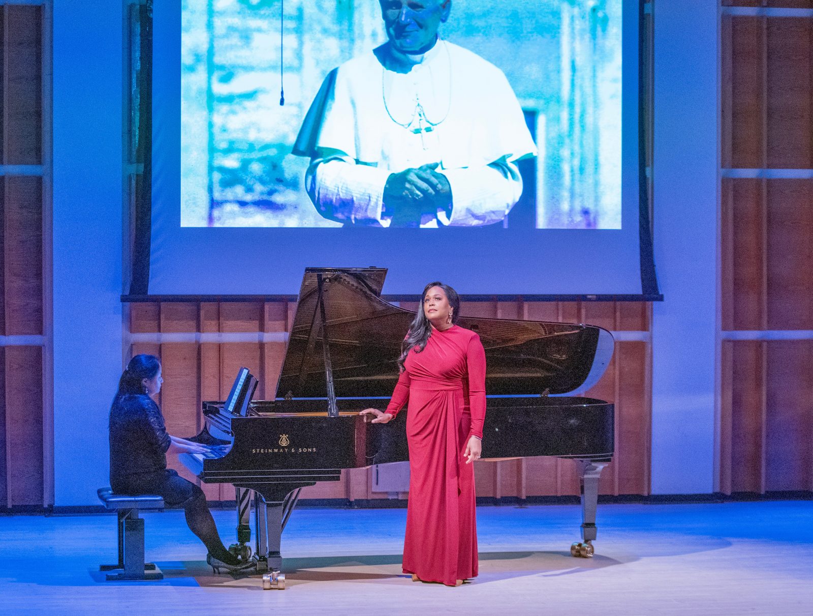 Wielkim wzruszeniem dla publiczności był występ dziewięcioletniego Andrzejka Michonia, który wykonał „Barkę” – ulubioną pieśń Papieża, porywając serca słuchaczy swoją dziecięcą szczerością i emocjonalnym zaangażowaniem. Na scenie pojawił się również Copernicus Children’s Choir pod batutą Bożeny Konkiel, którego czyste, dziecięce głosy dopełniły duchowy wymiar koncertu. Soliści baletu Tiffany Mangulabnan i Blake Krapels wystąpili w specjalnie na ten wieczór przygotowanej choreografii. Subtelny, pełen symboliki i harmonii taniec doskonale wpisał się w klimat wieczoru, stanowiąc wizualne dopełnienie muzycznej opowieści. Koncert zakończyły owacje na stojąco. Publiczność długo nie opuszczała sali, poruszona pięknem muzyki i głębią przesłania. Był to wieczór, który przypomniał o nieprzemijających wartościach: miłości, pokoju, przebaczeniu i godności człowieka, które stanowiły fundament pontyfikatu Jana Pawła II. Wśród gości honorowych obecni byli m.in. Arcybiskup Gabriele Giordano Caccia, Stały Obserwator Stolicy Apostolskiej przy ONZ i Generał dywizji Krzysztof Nolbert, attaché ds. obrony, wojska, marynarki i lotnictwa przy Ambasadzie RP w USA.