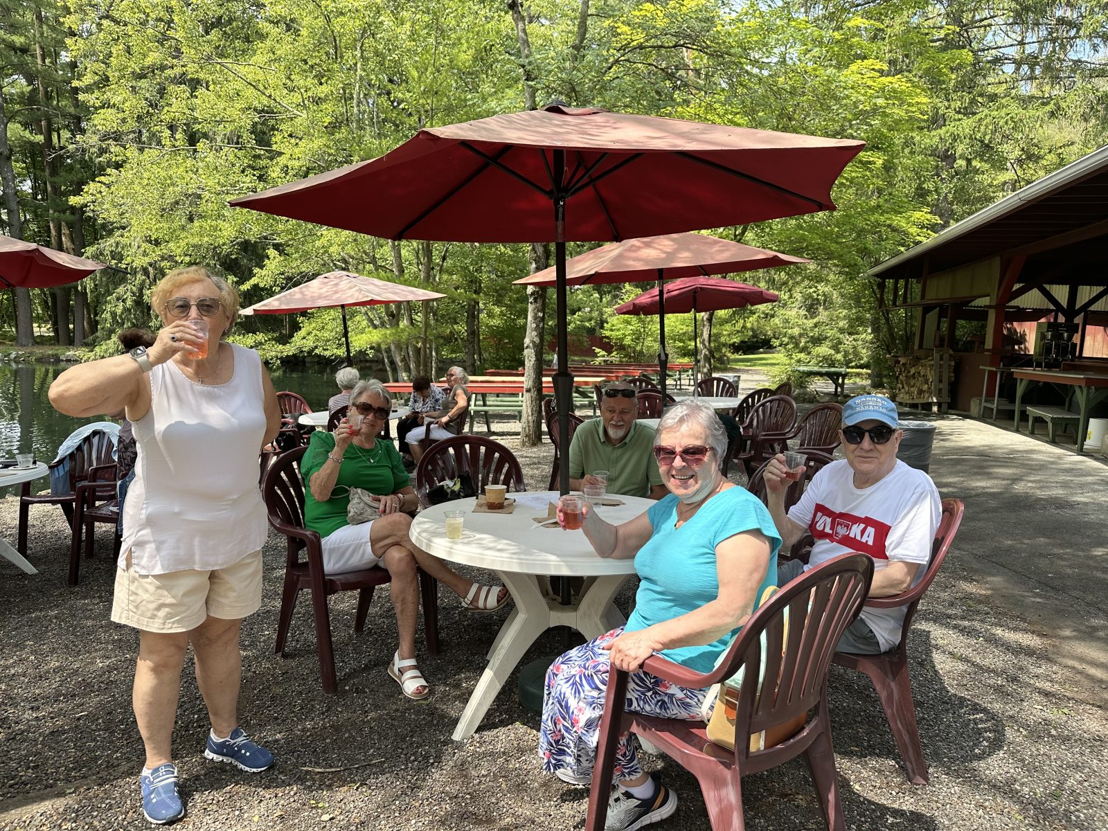 Seniorzy bawili się znakomicie, tańcząc, ciesząc się piękną pogodą, pysznym jedzeniem, bingo i wspaniałym towarzystwem. To był dzień pełen śmiechu, dobrej zabawy i niezapomnianych wrażeń. Moglibyśmy długo opowiadać, ale wystarczy spojrzeć na zdjęcia! Było cudownie!