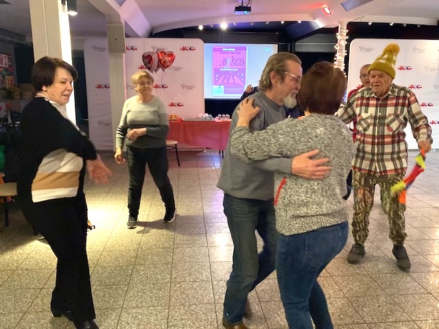Sala została udekorowana w walentynkowym stylu – dominowały czerwone akcenty, serca oraz nastrojowe oświetlenie, które tworzyło ciepłą, przyjazną atmosferę. Była to nie tylko okazja do zabawy, ale również do spotkań towarzyskich, rozmów i wspólnego świętowania.