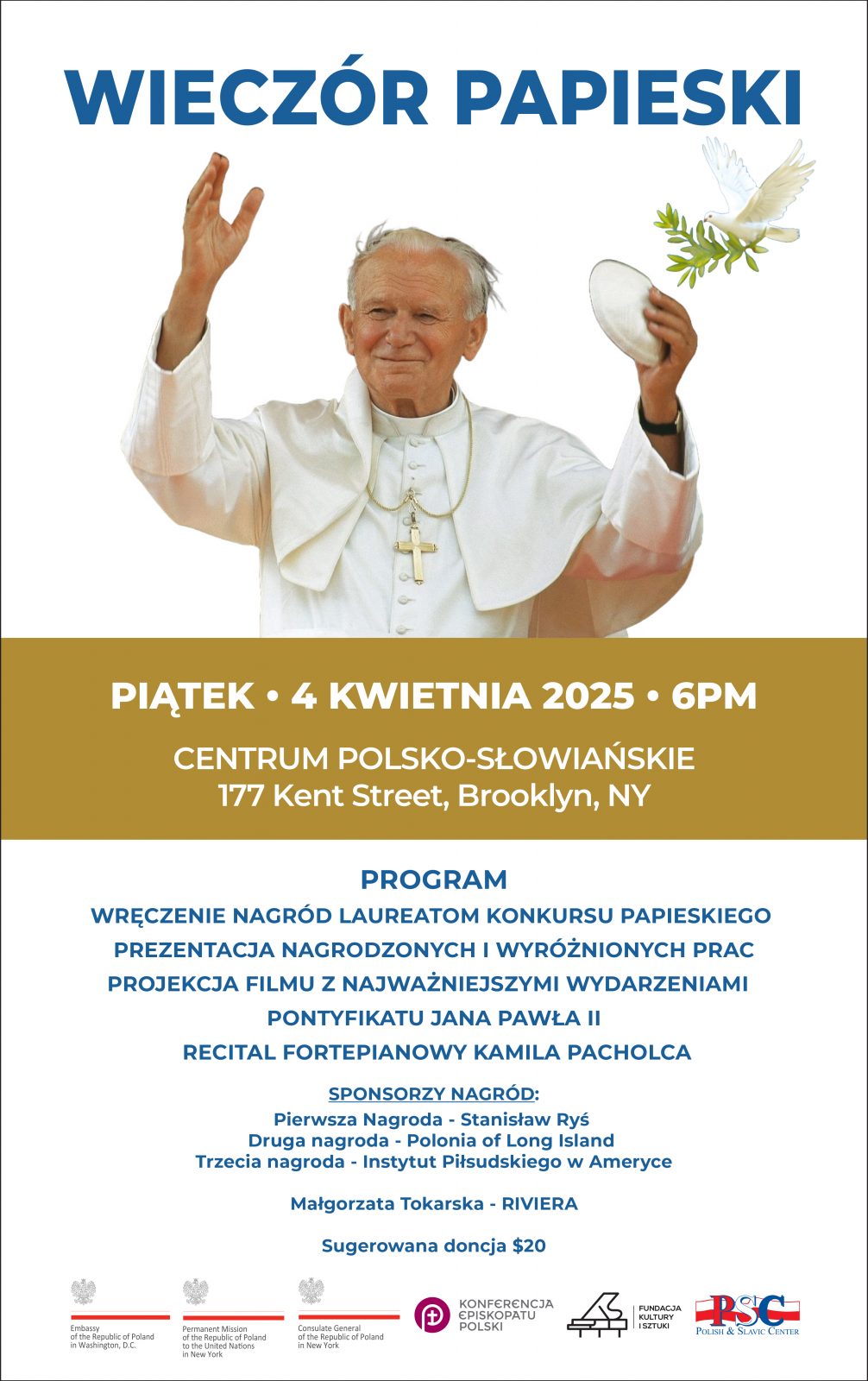 KLUB SENIORA-JP II, KLUB SENIORA-KRAKUS, WIADOMOŚCIWieczór Papieski w CPS – 4 kwietnia 2025 – 177 Kent, Brooklyn Posted on March 1, 2025April 14, 2025 by Administrator