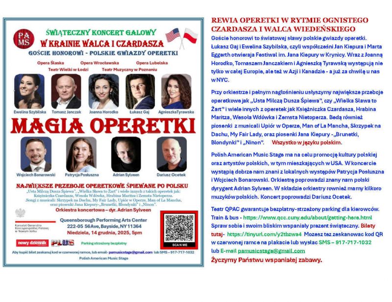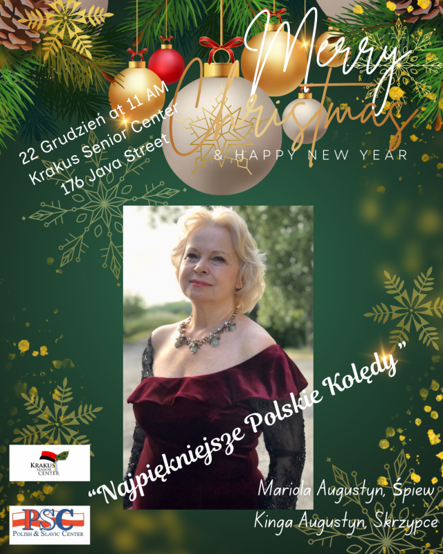 Zapraszamy serdecznie! Poniedziałek, 22 grudnia, godz. 11:00Krakus Senior Center (PSC)176 Java Street ✨ „Najpiękniejsze Kolędy Polskie” ✨ Wystąpią:Mariola Augustyn [...]