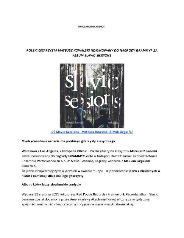 read moreGitarzyści z Polski i Słowenii nominowani do Grammy – Mateusz Kowalski i Mak Grgić docenieni za album Slavic Sessions