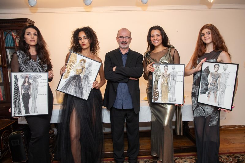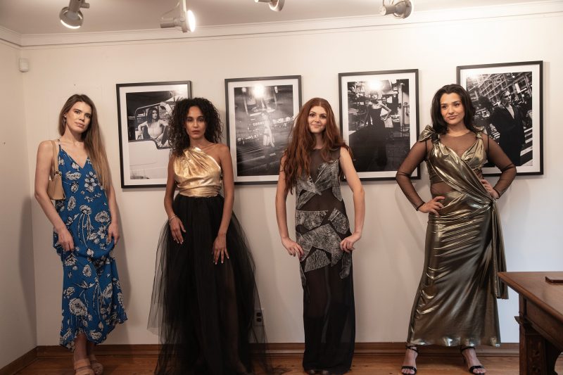 9896 – Modelki/Aktorki z Metropolis Artists Agency z projektami kreacji Patrycji Plesiak, w których wystąpiły, od lewej Christine James Walker, Giordana Pieri, Sarah Federman, Ramona Gantz oraz Mariusz Bargielski, kurator wystawy, w środku