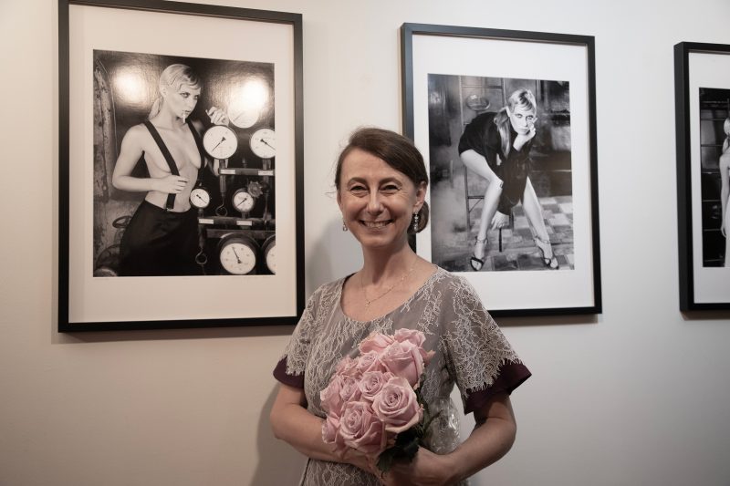 Izabella Łapińska – polska artystka, fotografka i profesor Szkoły Filmowej w Łodzi gdzie uzyskała doktorat z zakresu sztuki filmowej ze specjalizacją w fotografii. Jej prace były prezentowane na całym świecie i publikowane w prestiżowych europejskich magazynach. Zajmuje się również krytyką fotografii, filmu i reklamy, koncentrując się na ciele, erotyzmie i wykluczeniu w sztuce. Na wystawie przedstawiła serię dziewięciu biało-czarnych zdjęć „Zmysłowość w Elektrowni Scheiblera”, modelki sfotografowanej w pięknych wnętrzach historycznej Elektrowni Karola Scheiblera w Łodzi, zbudowanej w 1910 roku, a zaprojektowanej przez Alfreda Frische w stylu Art. Nouveau.