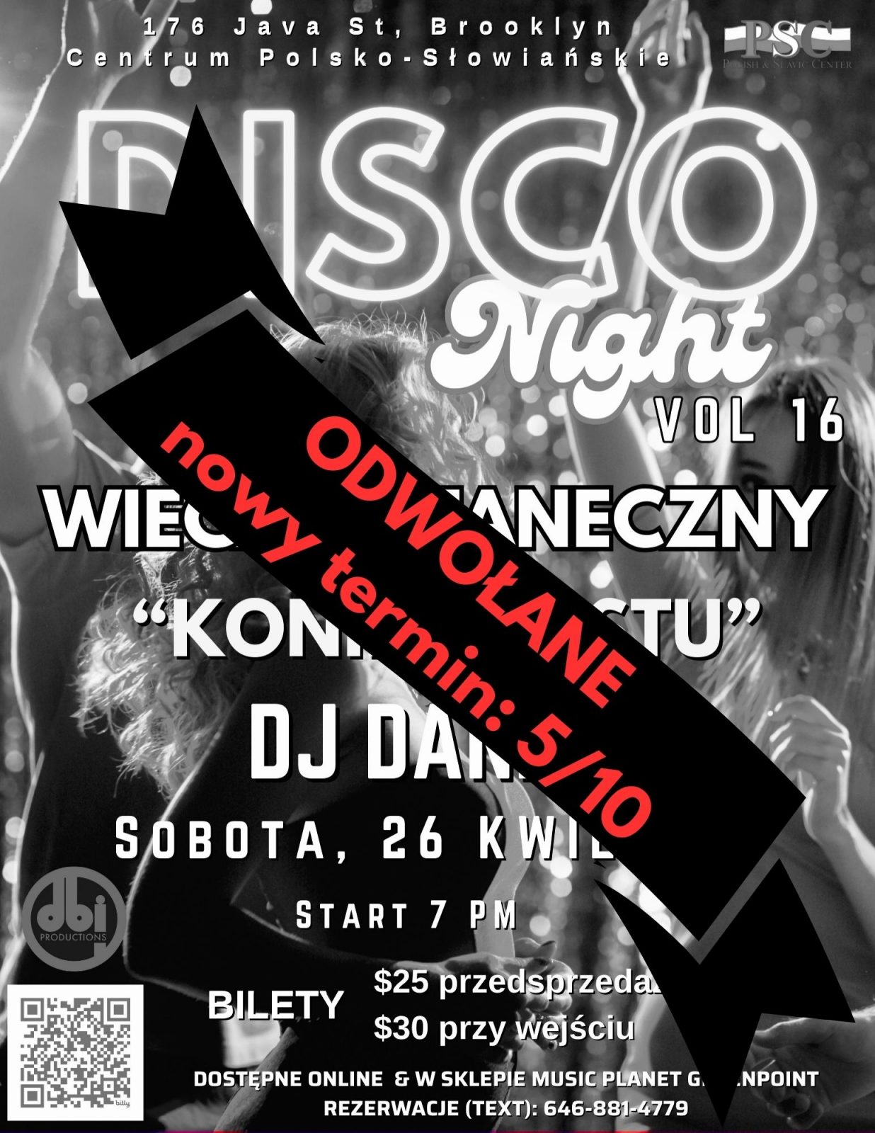 W związku z odwołaniem imprezy 4/26 imprezy, już zakupione bilety będą honorowane na zabawie 5/10.