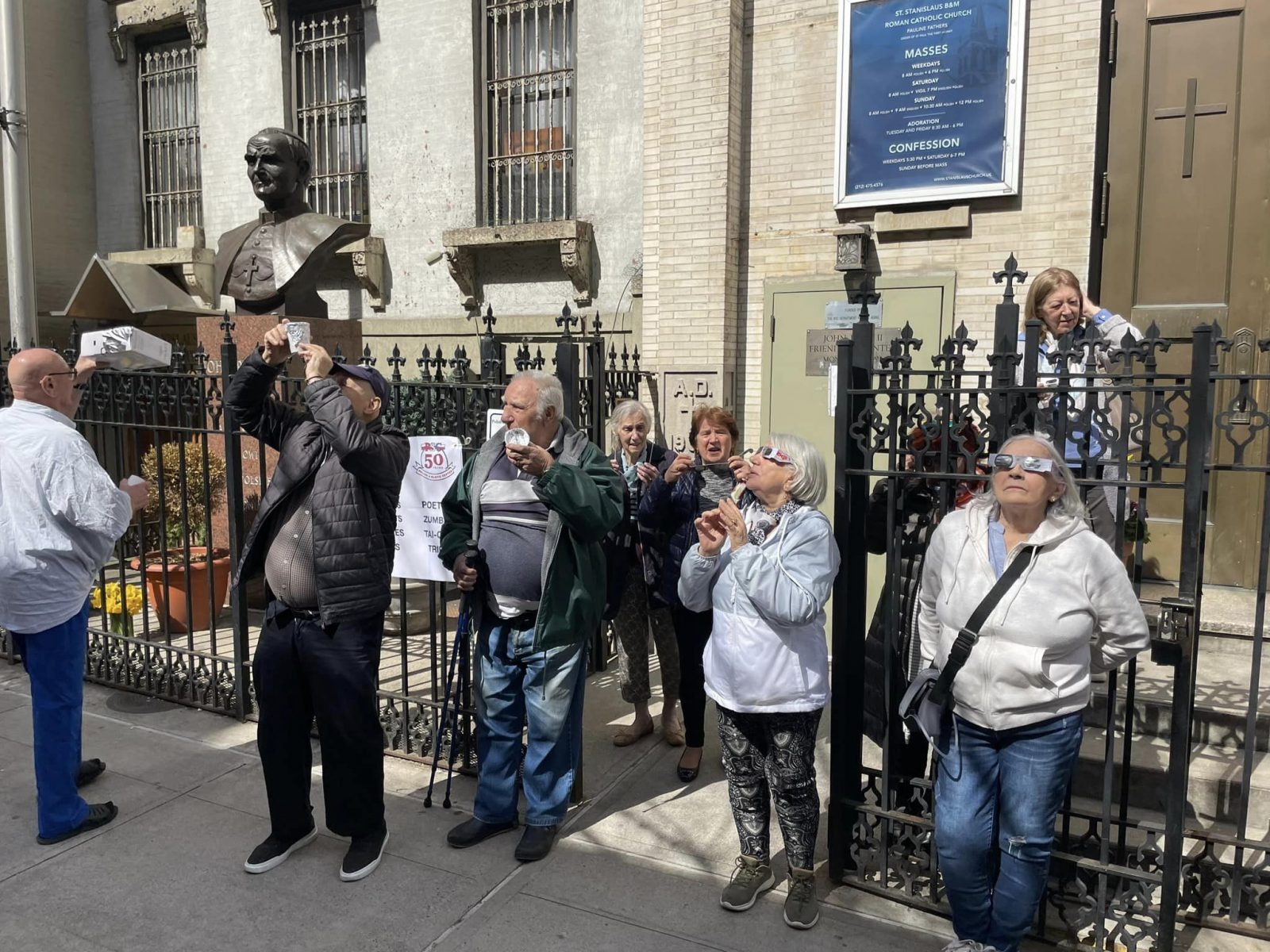 Centrum Seniora im. Jana Pawła 2 uczestniczyło w wydarzeniu, oglądając film „Total Solar Eclipse : through the Eyes of NASA”, obserwując na żywo w telewizji zaćmienie od Meksyku, jak także na żywo na East Village. Seniorzy przygotowali własne pudelka „zaćmieniowe” i tez oglądali przez specjalne okulary te niesamowite zjawisko kosmosu.