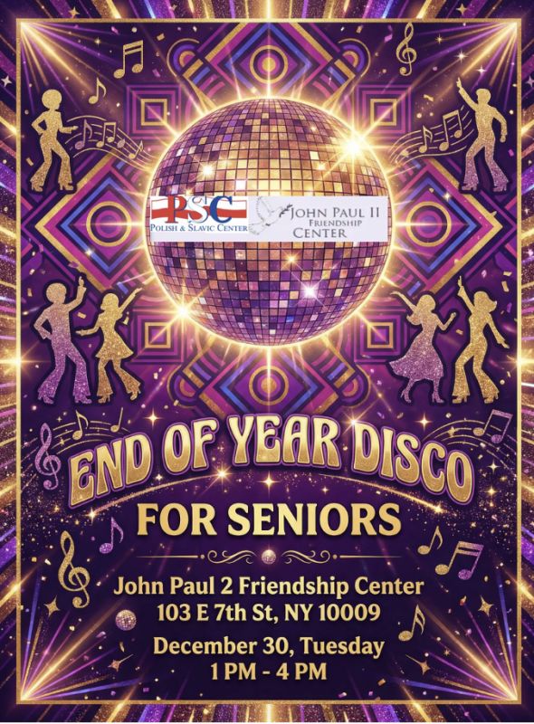 Zaproszenie 30 grudnia, wtorek na Dyskotekę dla Seniorów w Klubie im.JP2 na Manhattanie