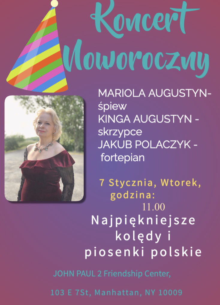 KLUB SENIORA-JP IIZaproszenie na koncert noworoczny w Klubie JP2 na Manhattanite, 7 stycznia, godzina.11.00, 2025 Posted on January 2, 2025January 3, 2025 by Administrator