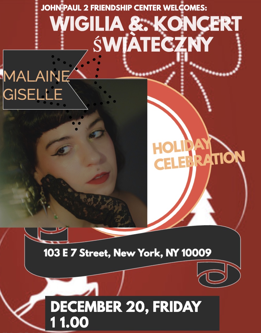 Dołączcie do nas na wyjątkowe spotkanie wigilijne, pełne świątecznej atmosfery, wspólnego kolędowania i ciepła! Gościem honorowym wieczoru będzie Malaine Giselle, która zaprezentuje piękny koncert świąteczny wprowadzając wszystkich w bożonarodzeniowy nastrój. Nie może Was zabraknąć!