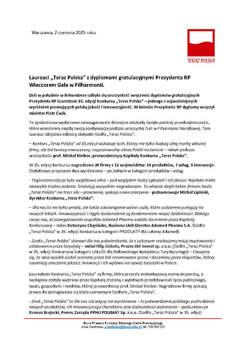 Znamy Laureatów 35. edycji Konkursu “Teraz Polska” oraz Konkursu “Wybitny Polak”